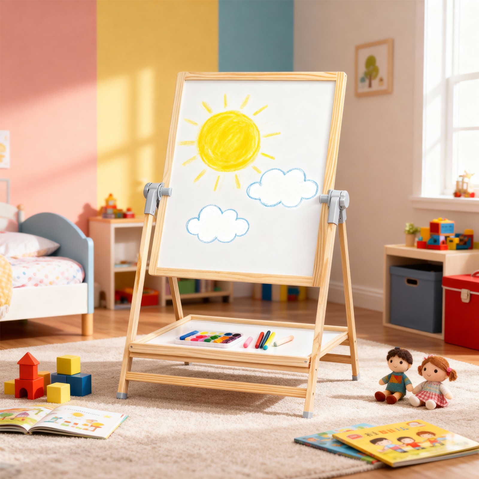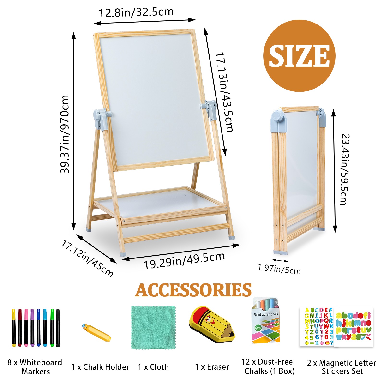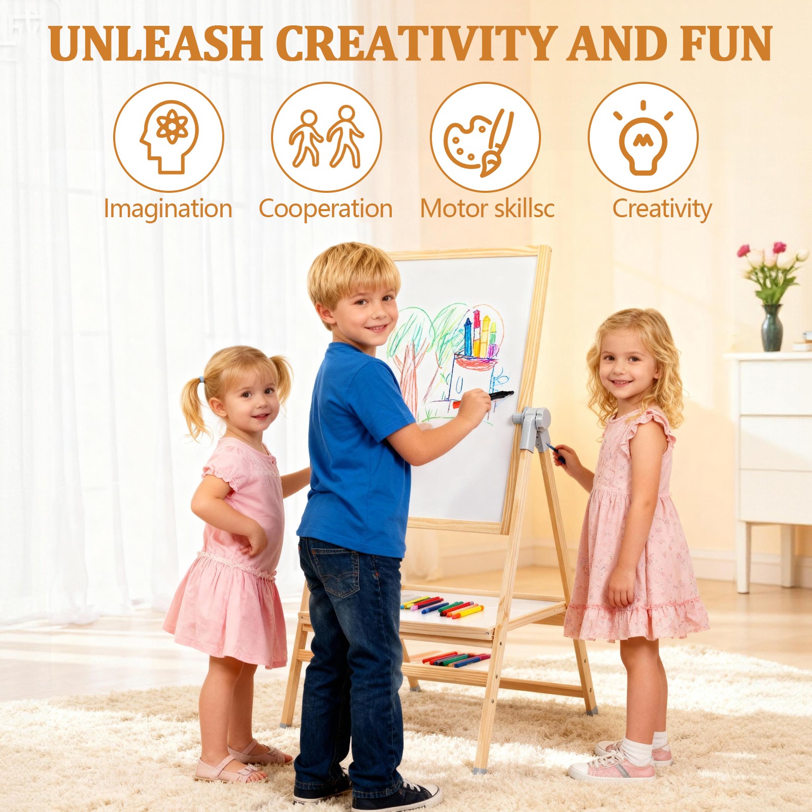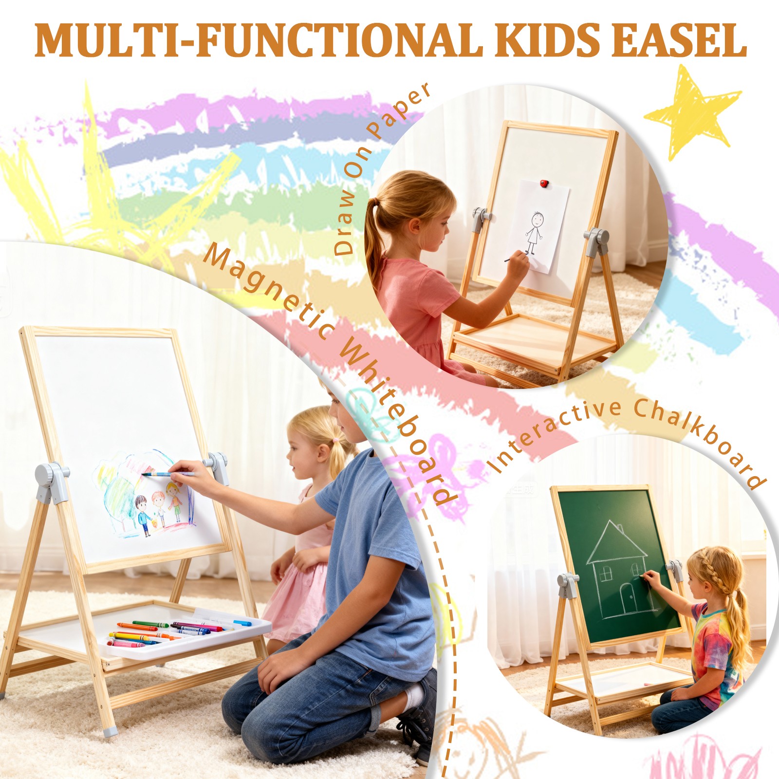 All-in-One Kids Easel: Adjustable Height, Double-Sided Magnetic Chalkboard