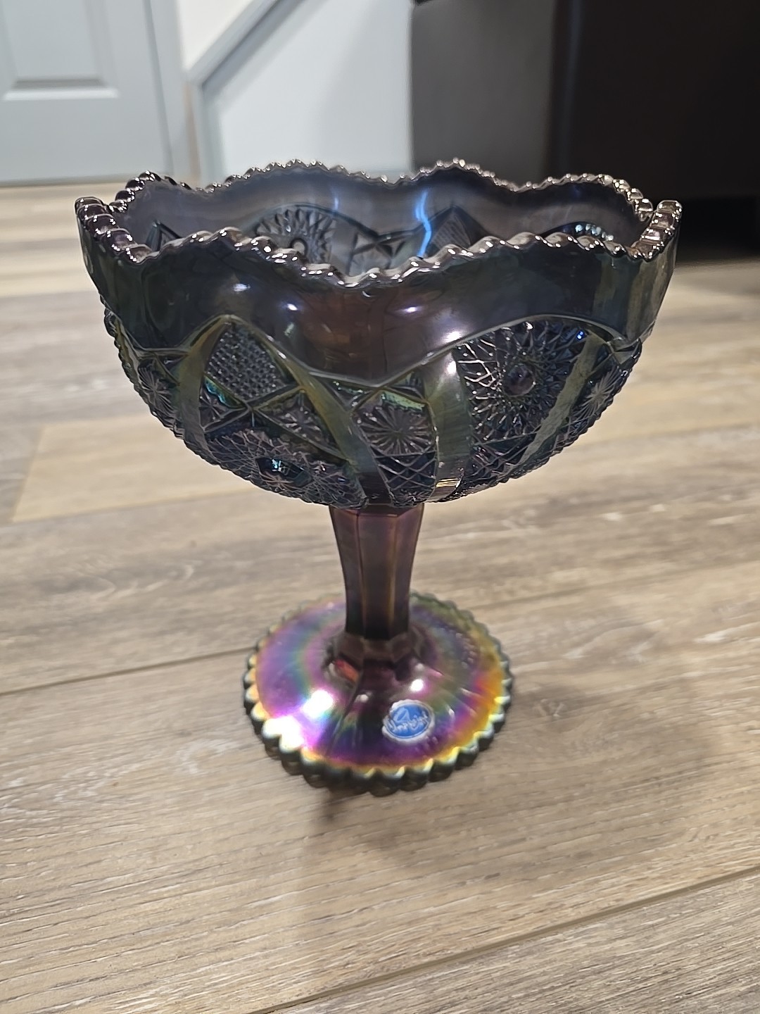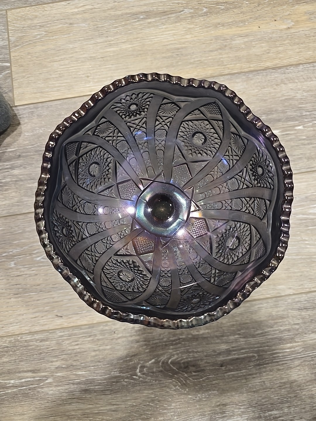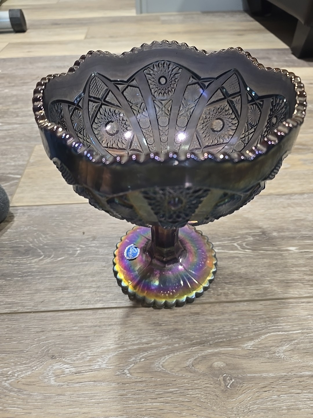 как выглядит IMPERIAL OCTAGON FOOTED CANDY DISH COMPOTE SMOKE AMETHYST фото