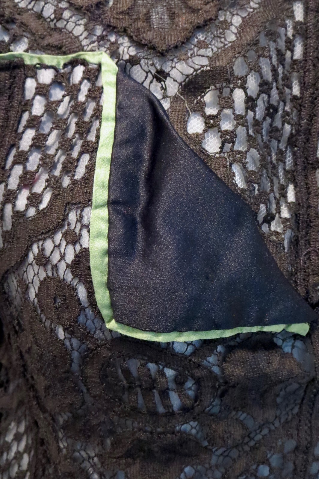 как выглядит Antique Victorian 1900s Black Bobbin Lace Silk Bodice Top Green Trim 34B фото