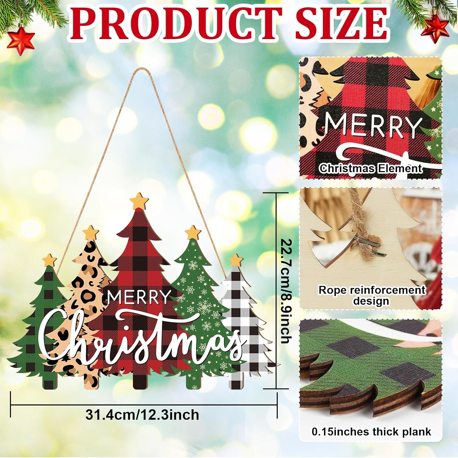Wooden Christmas Tree Door Wreath for Front Door Sign Wall Signs, Merry Christma