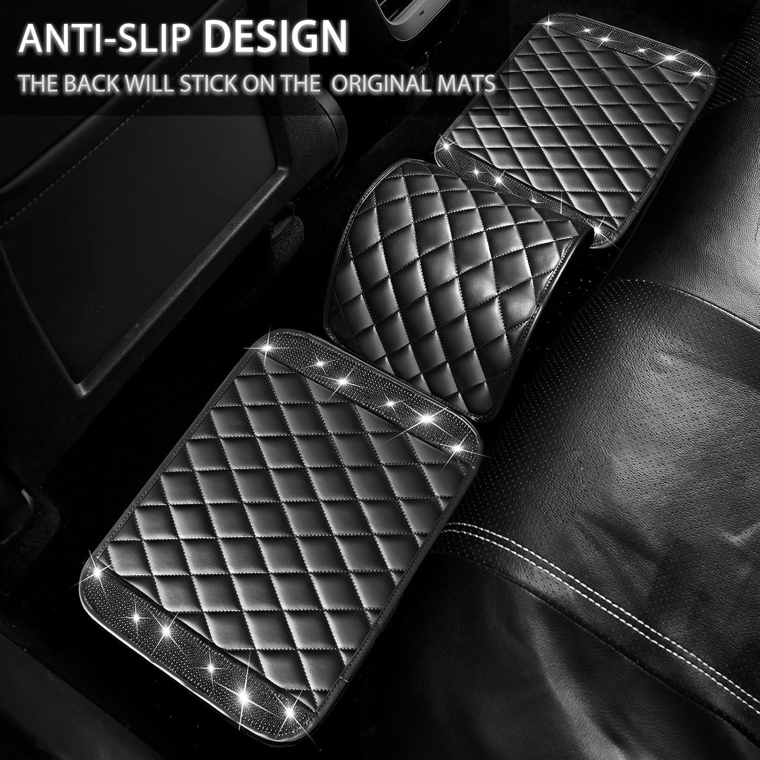 Black Bling Leather Car Floor Mats Full Set, Sparkly -Black Leather Diamond