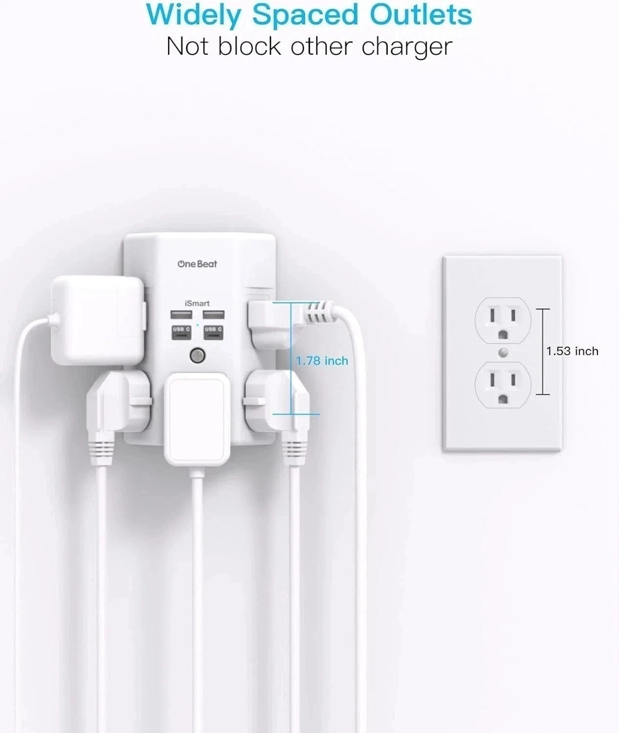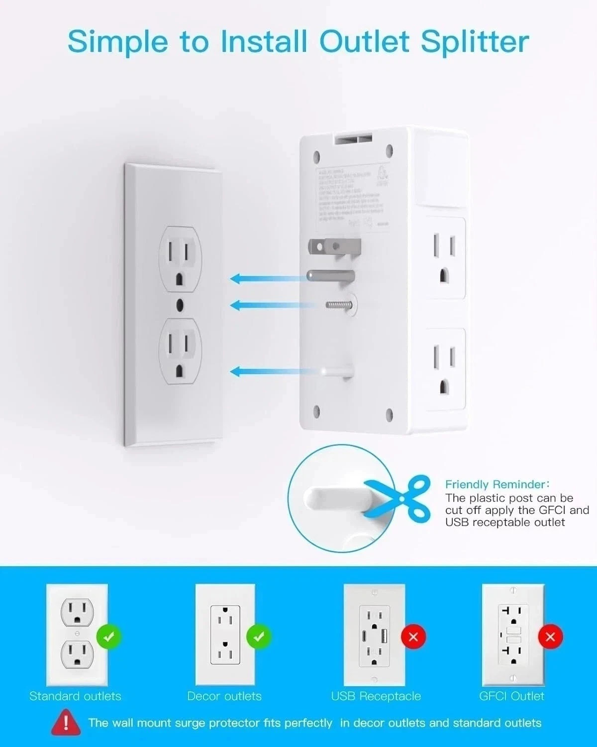 5 Outlet Extender Surge Protector Multi Plug Wall Adapter USB Charger Ports with