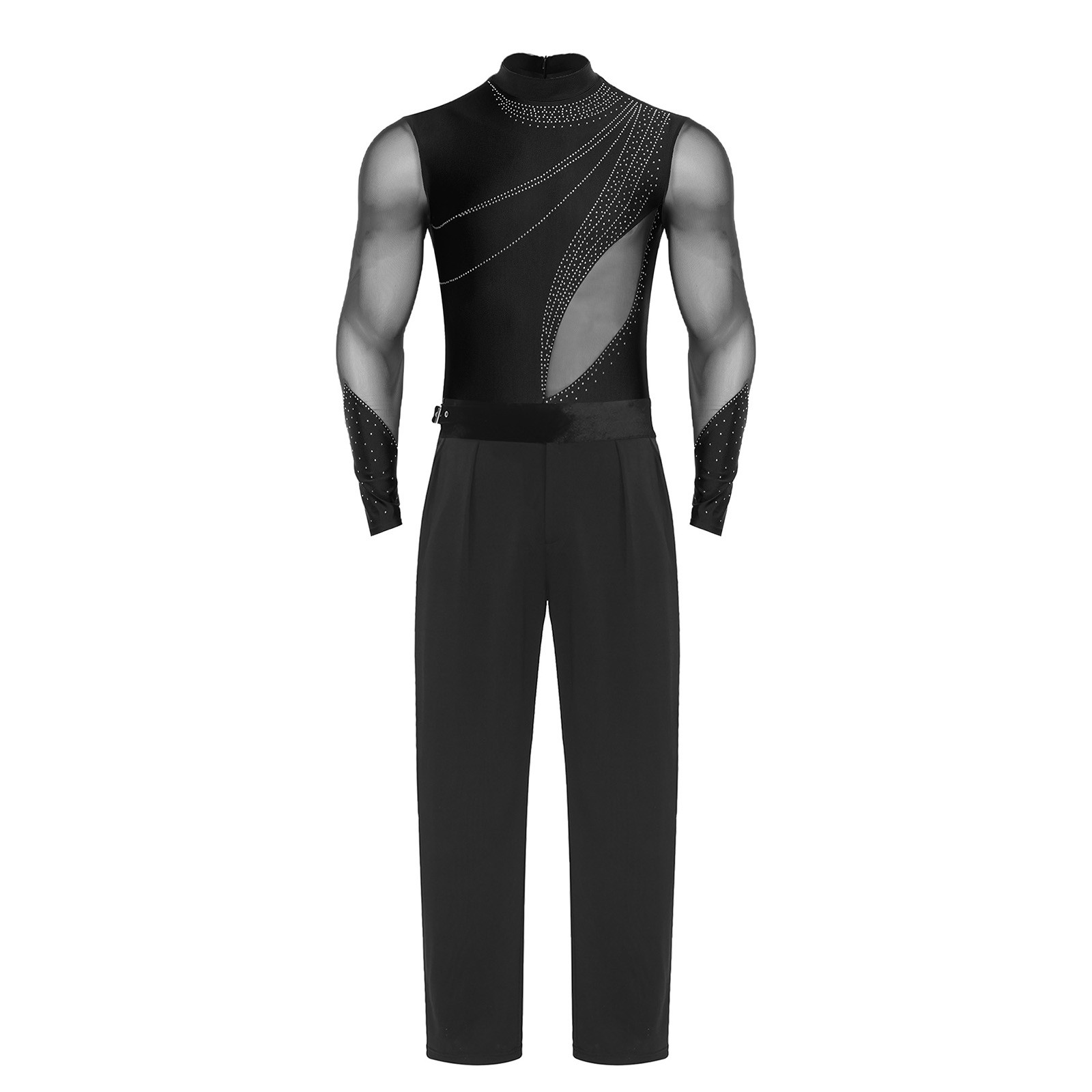 Mens Set Dancing Dancewear Costume Dance Outfit Salsa Mesh Waltz Long Sleeve