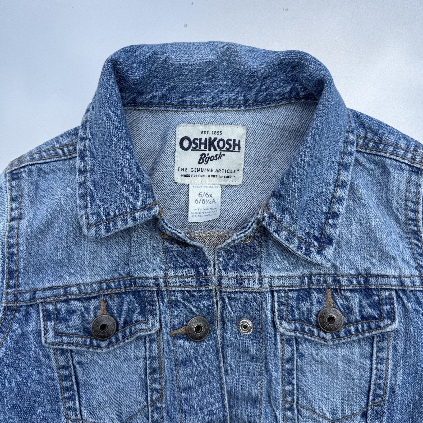 OshKosh B gosh Youth Vtg Snap Button Denim Trucker Jacket Size 6