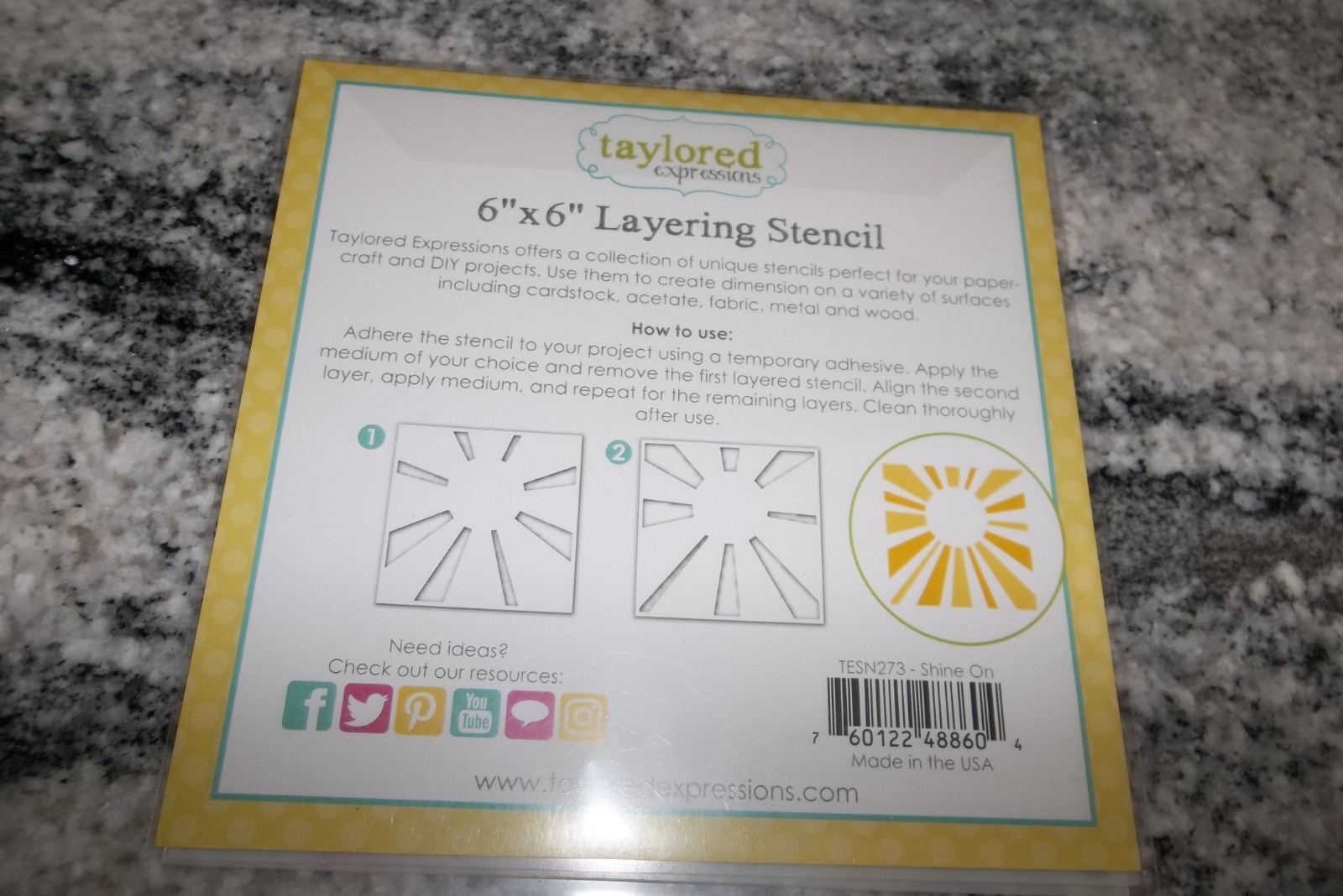 Taylored Expressions 6 X 6 Layering Stencil Shine On Pre-owned