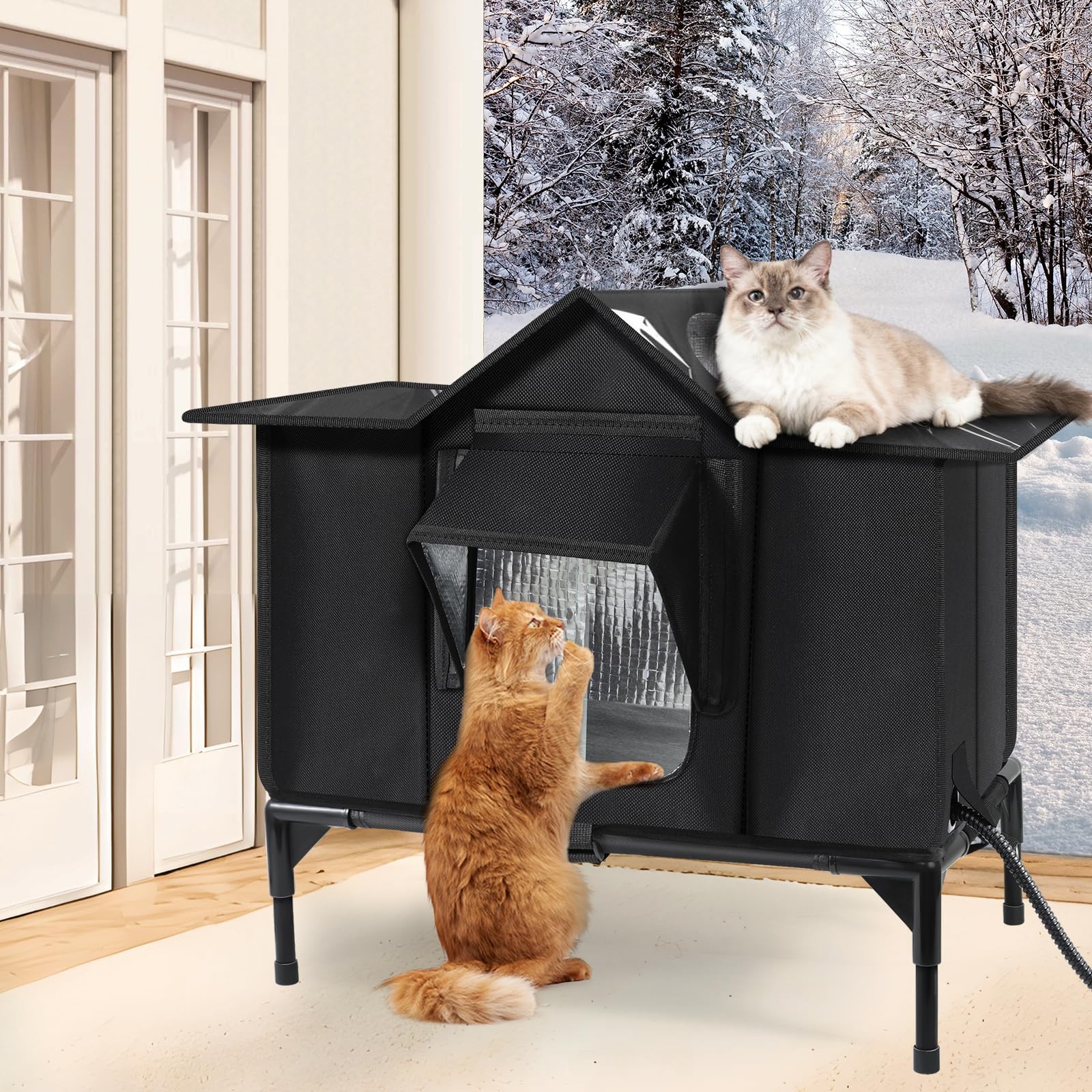 Heated Outdoor Cat House Weatherproof with Heating Pad, Insulated Feral Cat H...