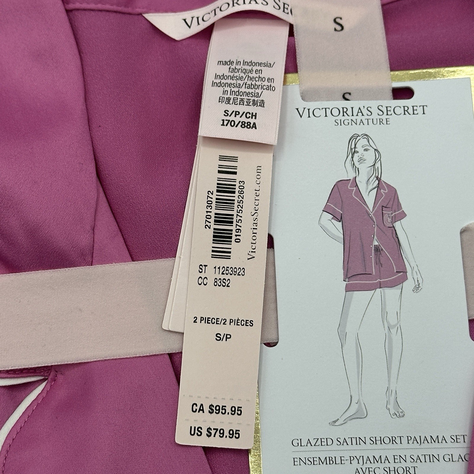 Victoria's Secret Satin Shorts Pajama Set Top Bottom Rose Pink Size Small