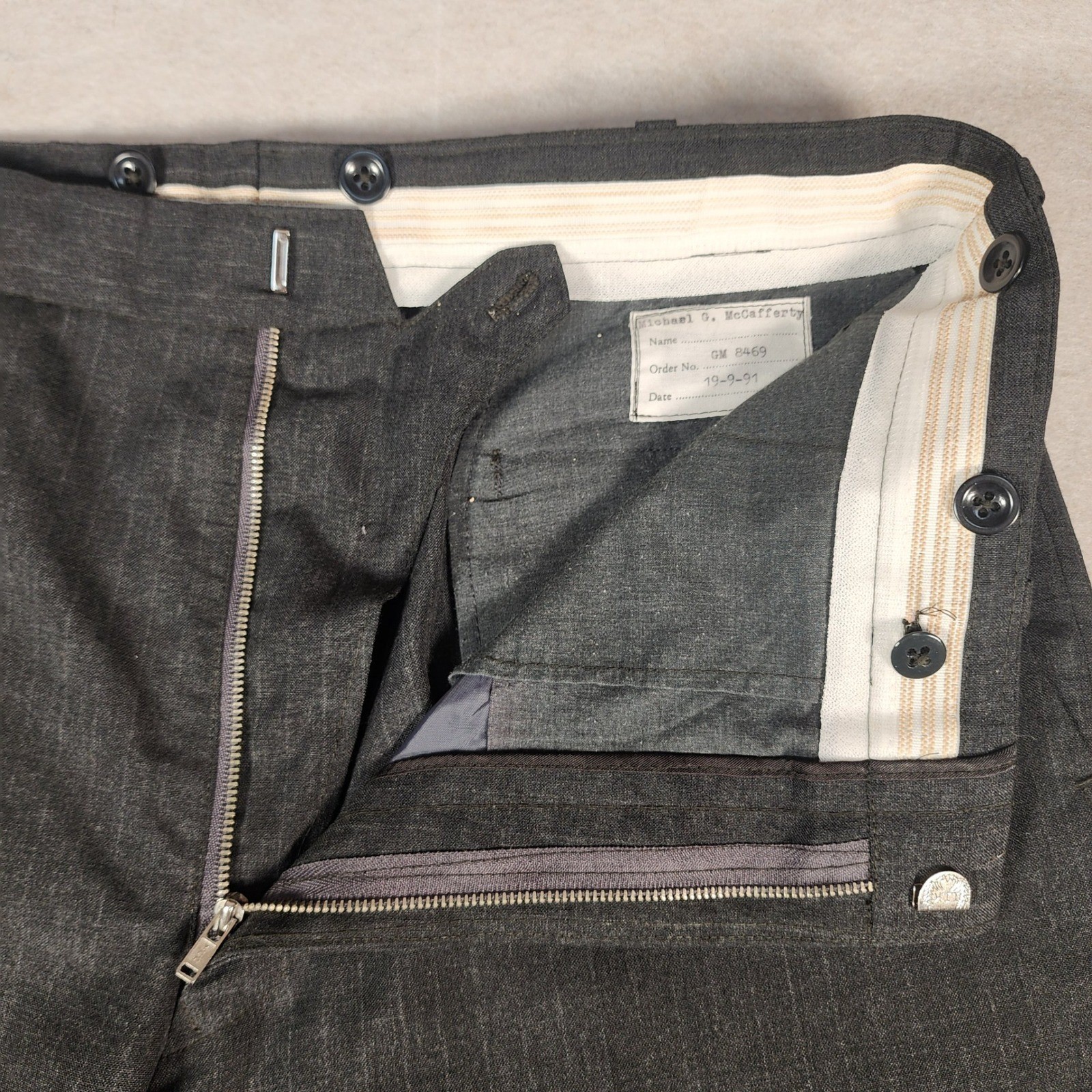 как выглядит All Wool Gray Pinstripe Dress Pants Vintage Made in Hong Kong Cuffed фото