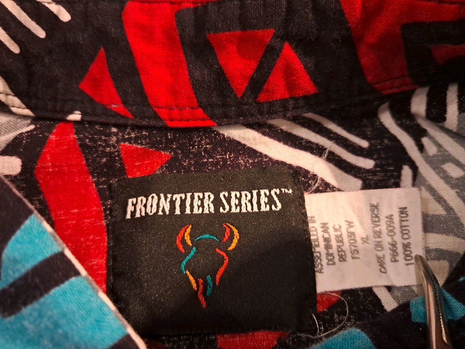 90s Frontier Series Brushpopper Aztec Western Shirt Men's XL Cowboy Landman VTG