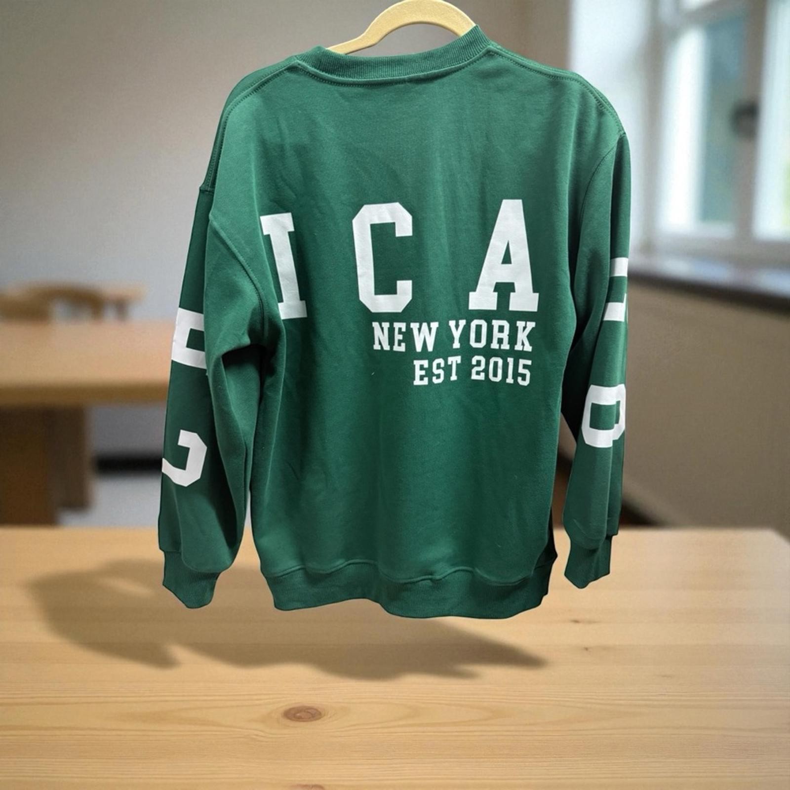 как выглядит Green White Back Letter Graphic Chicago New York Sweatshirt NWOT фото