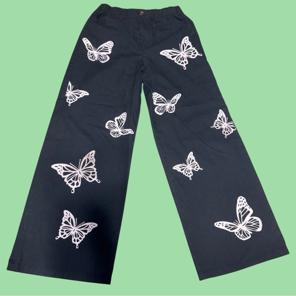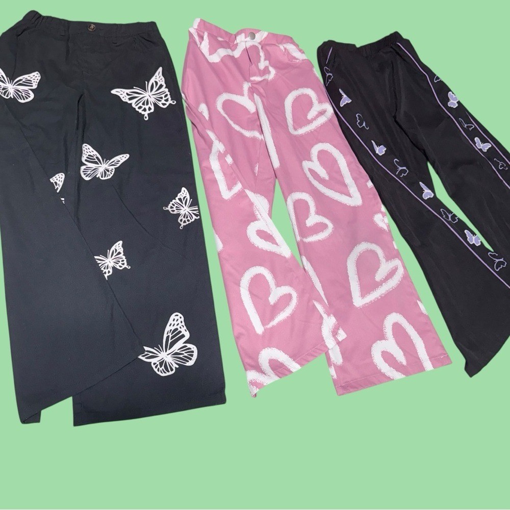 Girls Size 9 Wide Leg Pants Bundle 3 Pairs Graphic Prints Butterflies Hearts