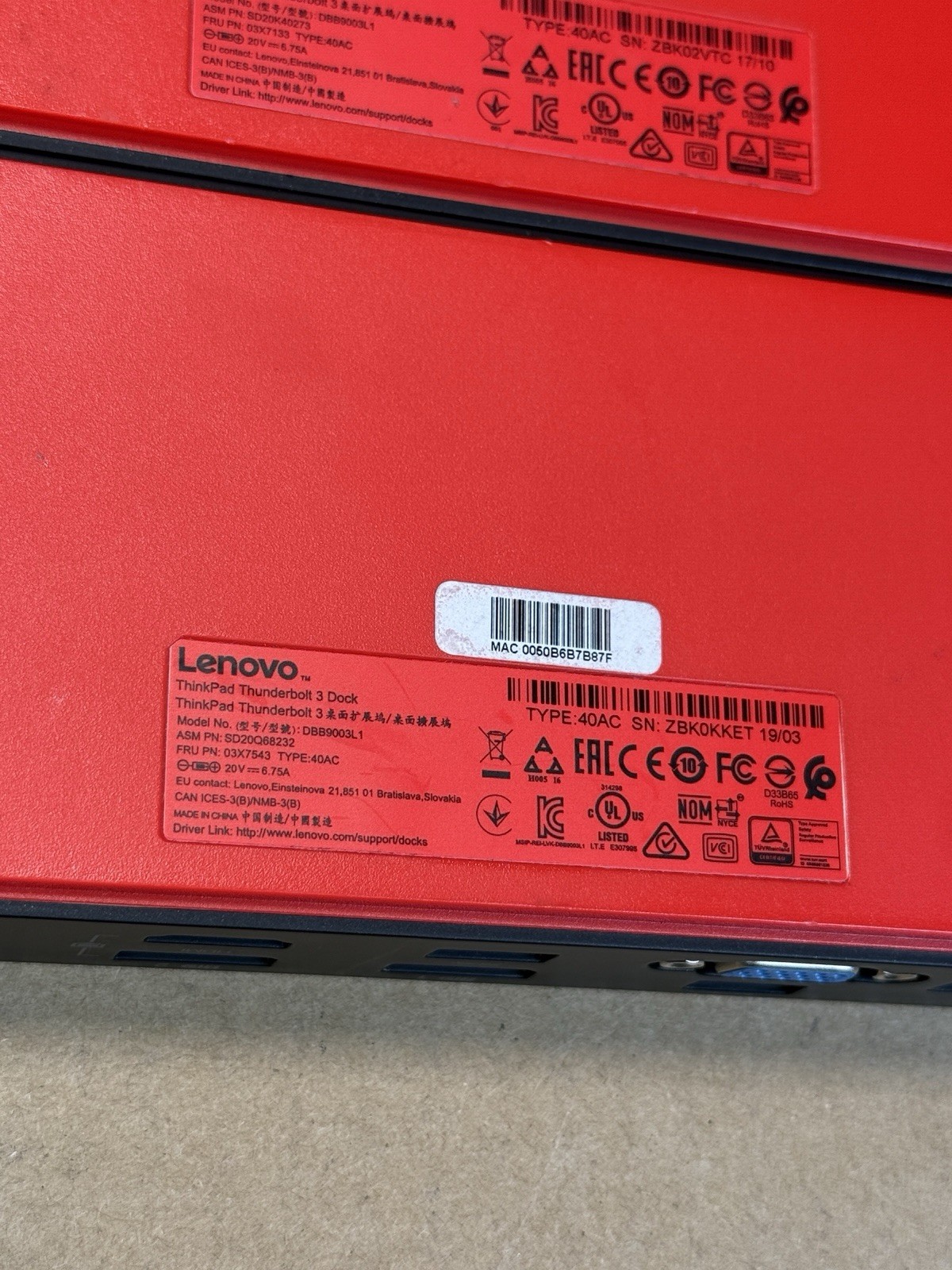 Lot 2 Lenovo ThinkPad Thunderbolt 3 Dock DBB9003L1 Type:40AC Docks Only