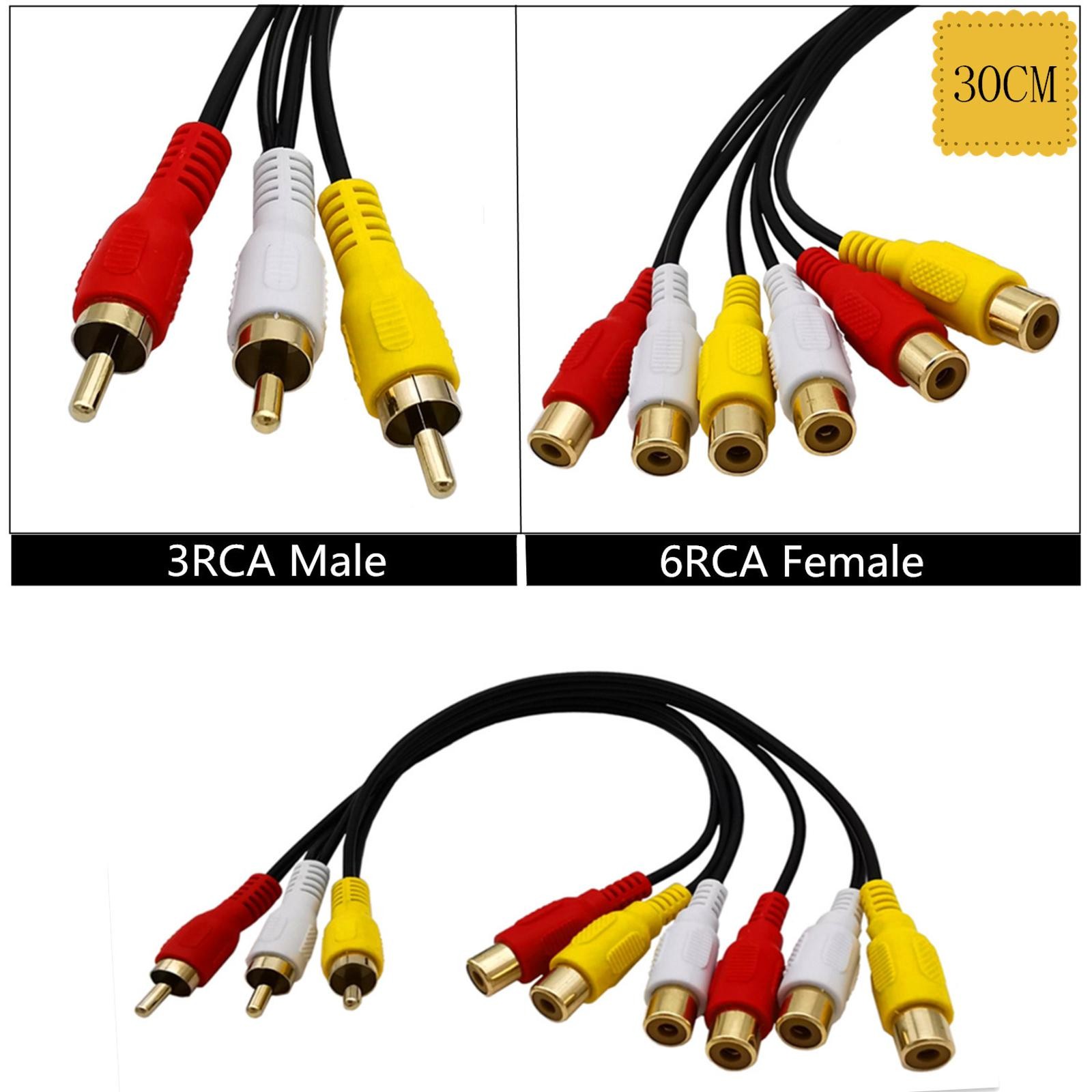 3 RCA Male Jack to 6 RCA Female Plug Splitter Audio Video Av Adapter Cable