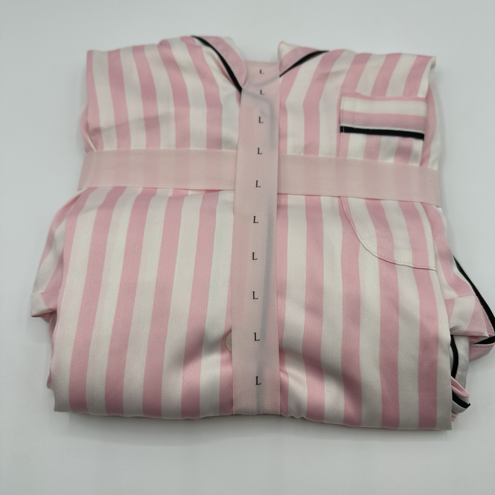 Victoria s Secret Satin Short Set Pajama Pj s Pink Iconic Stripe Size L