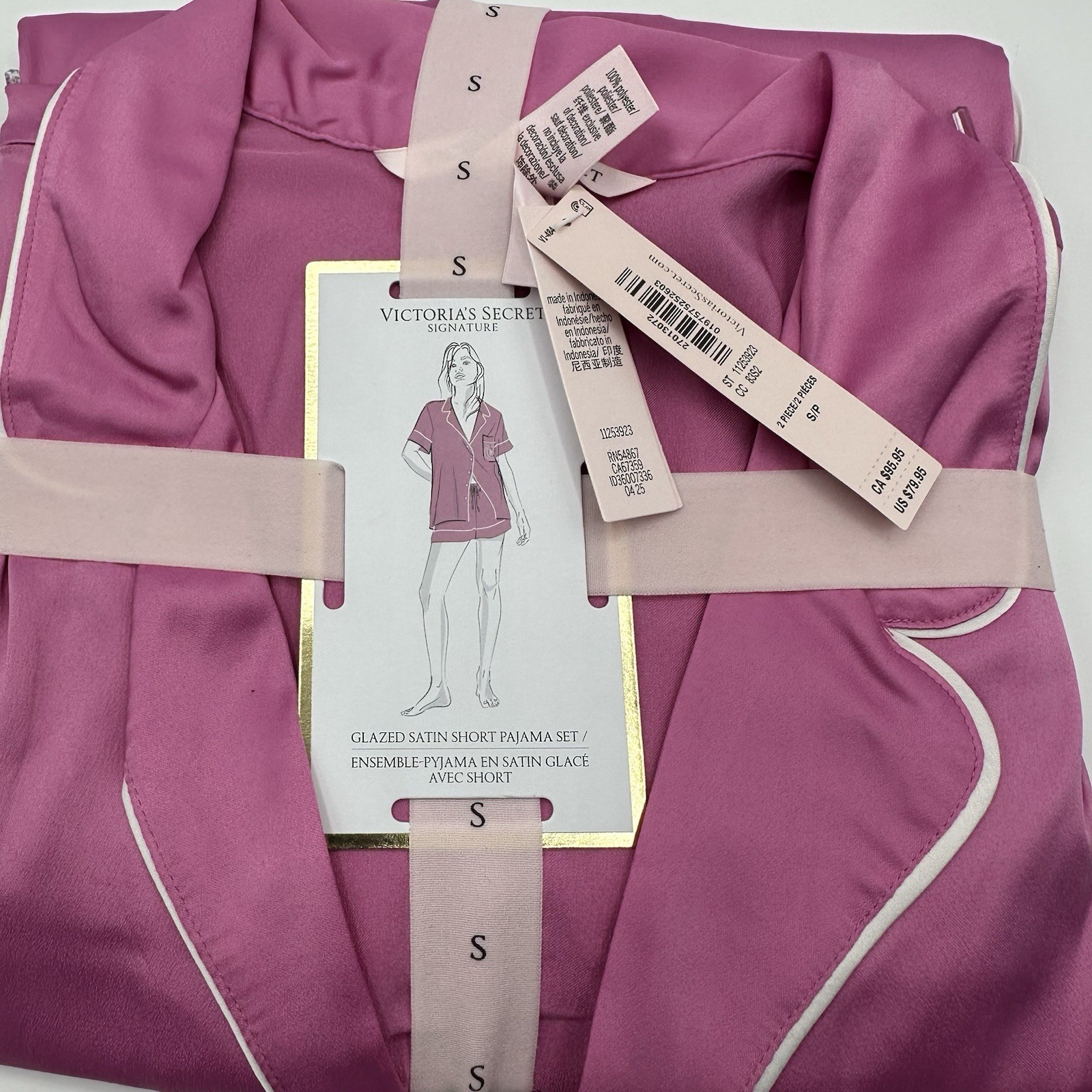 как выглядит Victorias Secret Satin Shorts Pajama Set Top Bottom Rose Pink Size Small фото