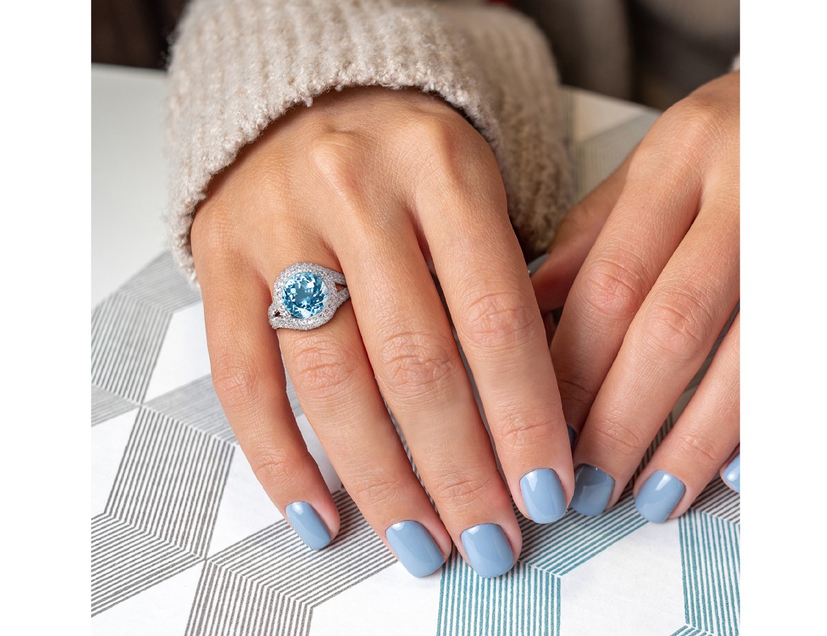как выглядит 5.94 Carat ctw Blue Topaz and White Topaz Ring Sterling Silver фото
