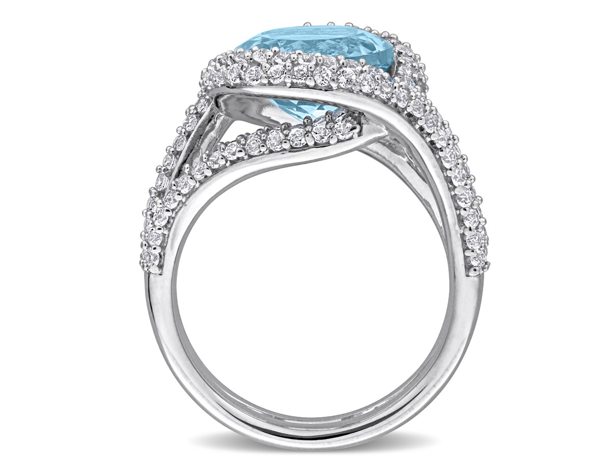 5.94 Carat ctw Blue Topaz and White Topaz Ring Sterling Silver