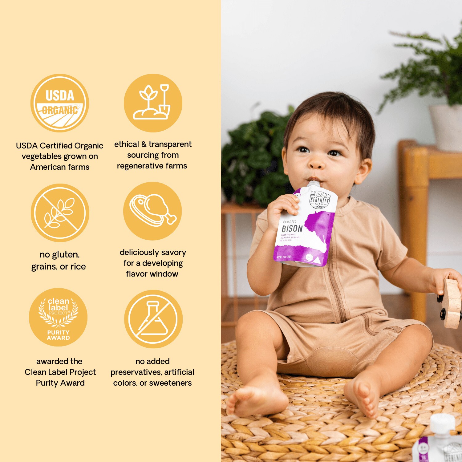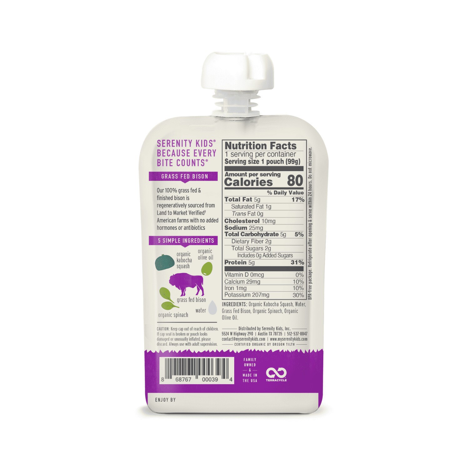 6 pack Bison Stage 2 Baby Food with Kabocha Squash Spinach 3.5 oz Pouch