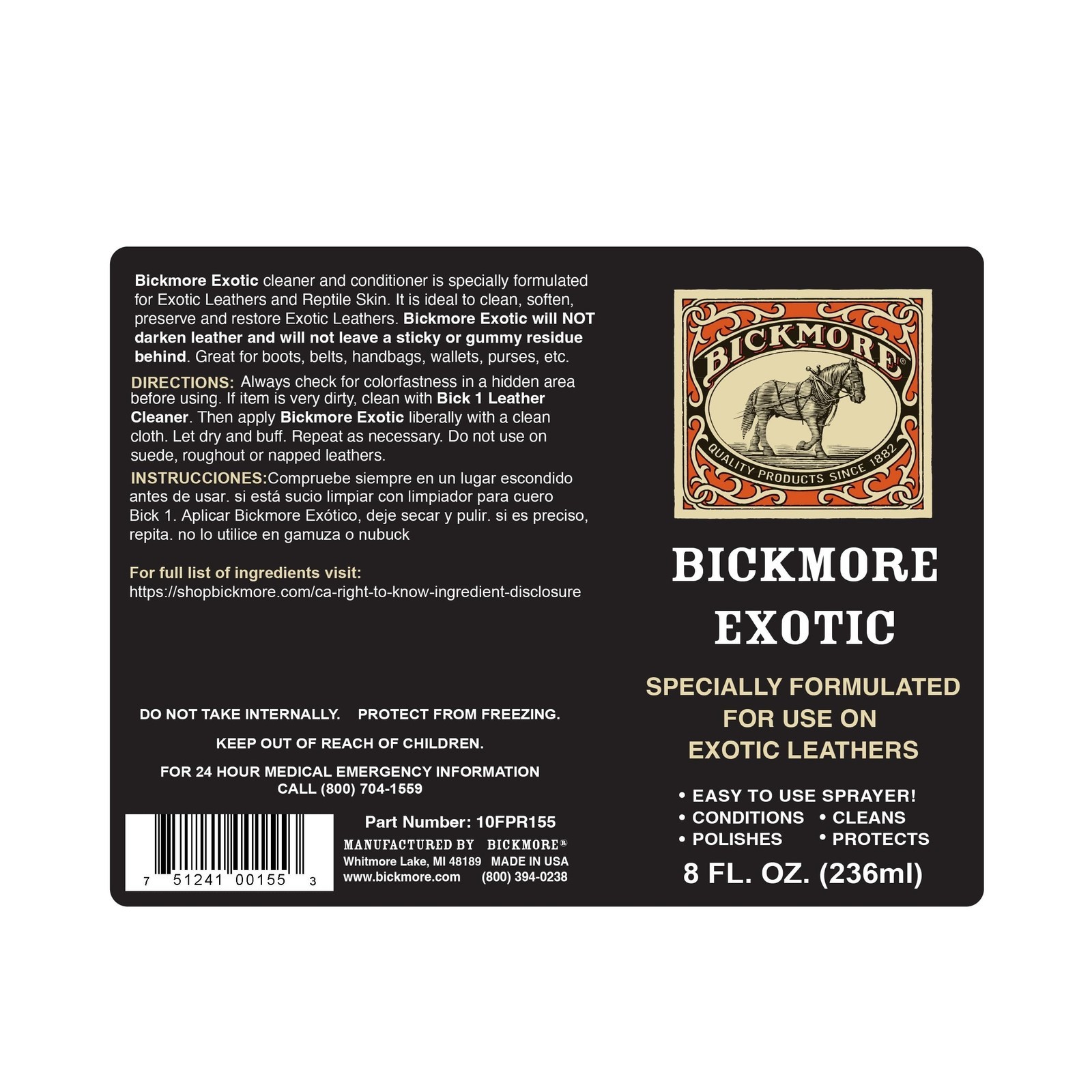 Bickmore Exotic 8oz - Specially Formulated Leather Spray Used to Clean Condit...