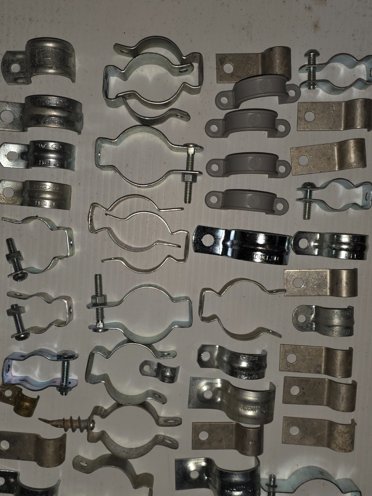 как выглядит lot of 120 assorted conduit / EMT / electrical PVC hangers straps 3/8" - 1" фото