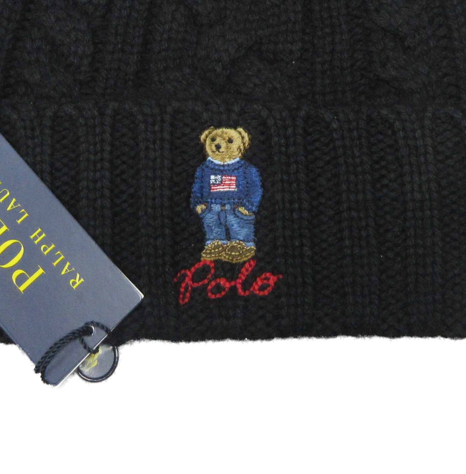Polo Ralph Lauren Men's Black Polo Bear Wool Blend Cable Knit Cuff Beanie