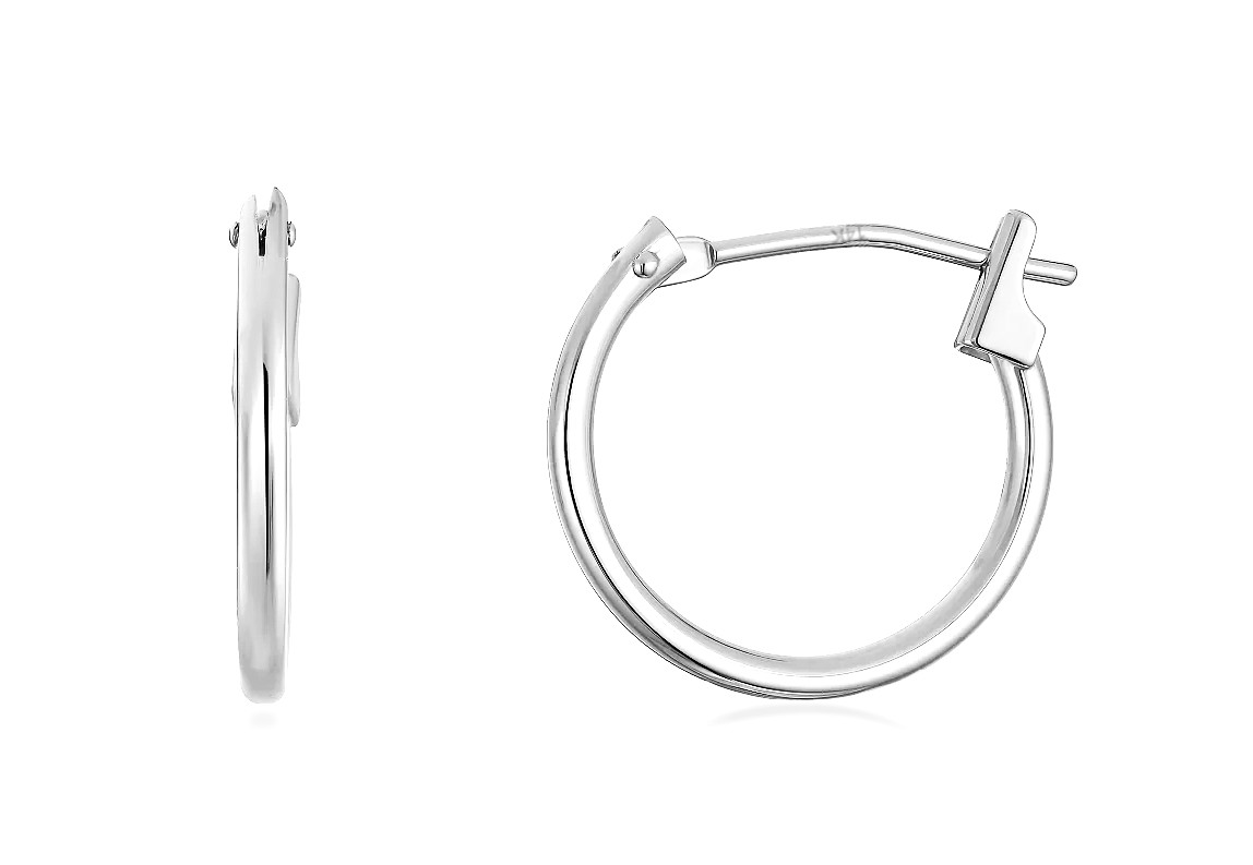 14K White Gold Hoop Earrings Plain 14 x 1.25mm Small Hoops Great for Girls