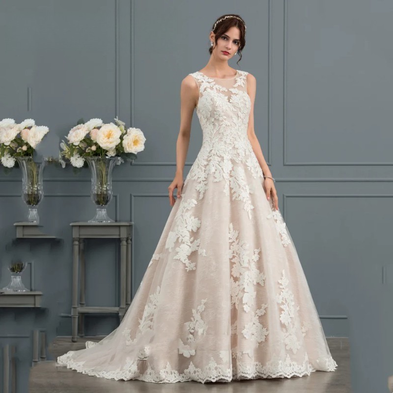 Princess Court Train Lace Tulle Wedding Dress With Sequins Glitter Bridal Gowns