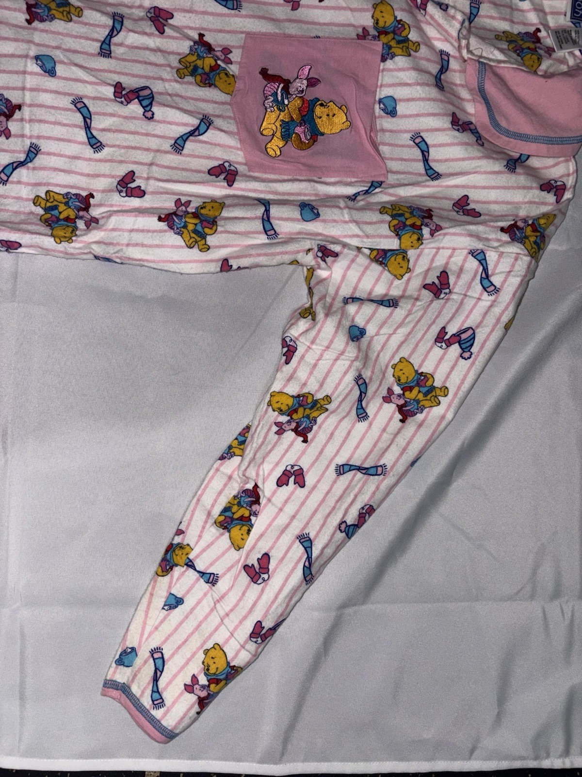 Vintage 90 s Winnie the Pooh Flannel Winter Pajama Set Size L Button PJ Y2K EUC