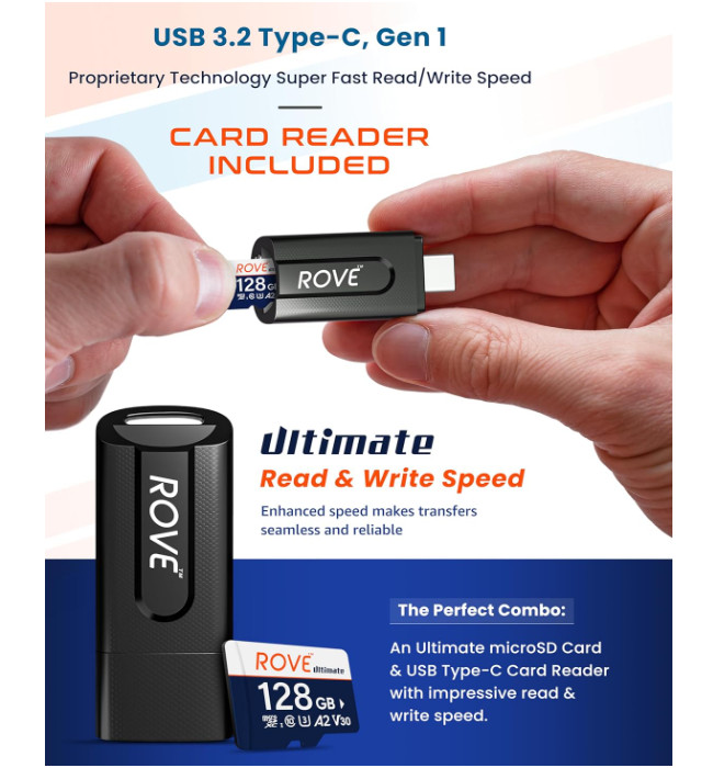ROVE Ultimate Micro SD Card microSDXC 128GB Memory Card with USB 3.2 Type C