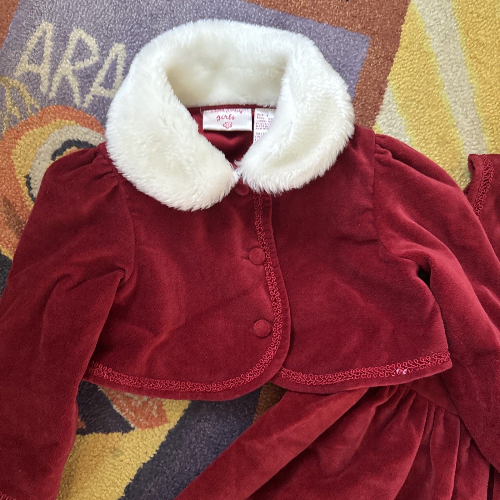 Vintage Laura Ashley Girls 4t Red Velvet Portrait Christmas Dress Bolero Set