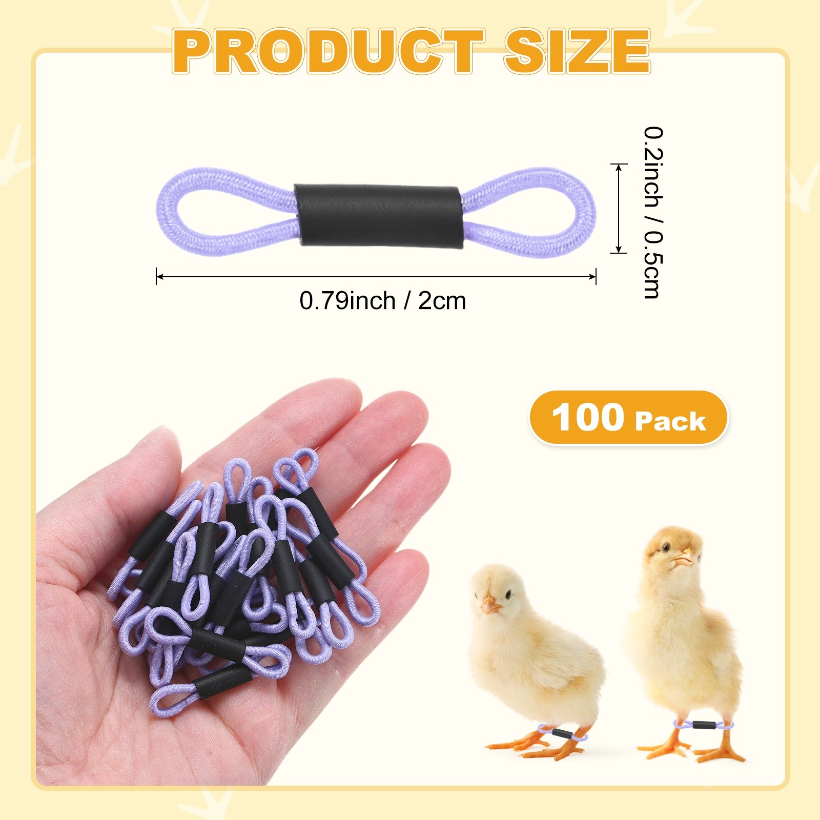 100-Pack Polyester Chick Leg Bands for Poultry/Chicks/Birds Light Purple
