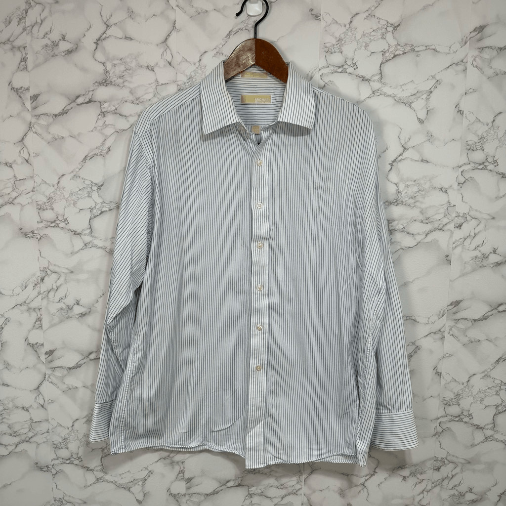Michael Kors Men s Shirt sz 17.5-34/35 Cotton Striped Button Down F254