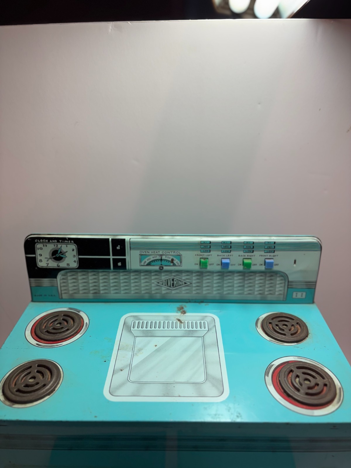 Vintage Wolverine Tin Litho Toy Stove Oven Turquoise Childs Range 12