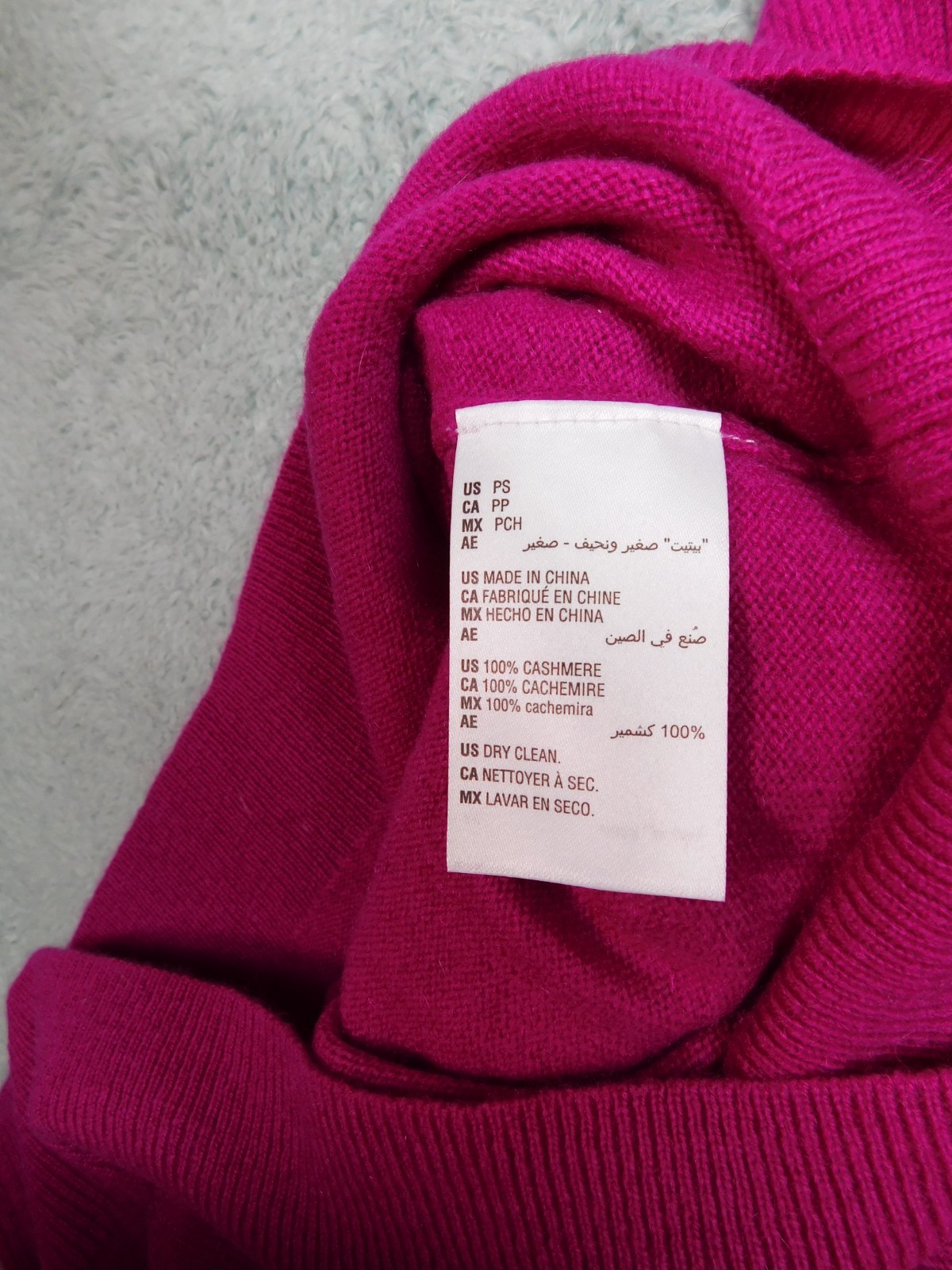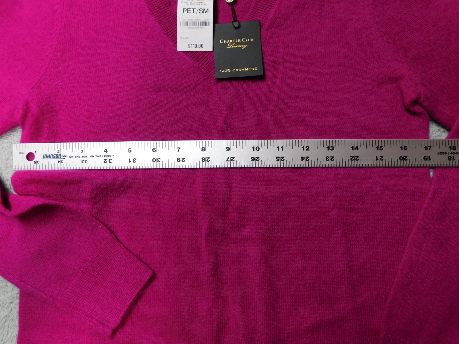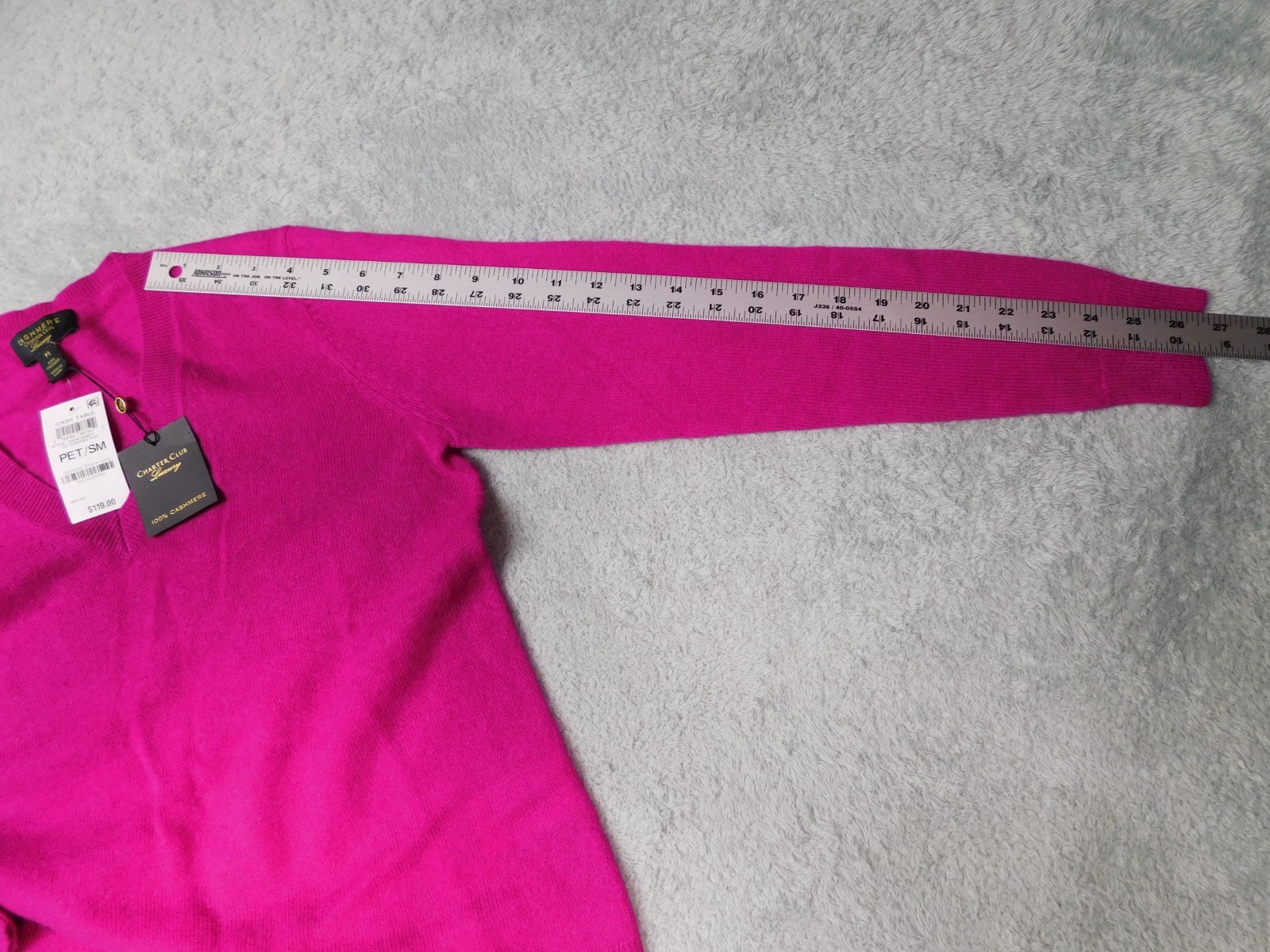 NWT CHARTER CLUB LUXURY PS Fuchsia First 100 Cashmere V-Neck Sweater 119