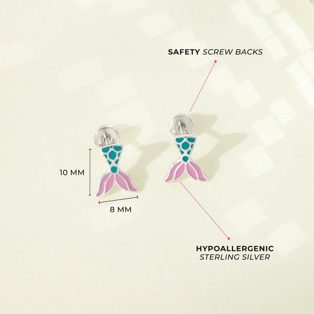 Mermaid Tail Kids / Children's / Girls Earrings - Sterling Silver