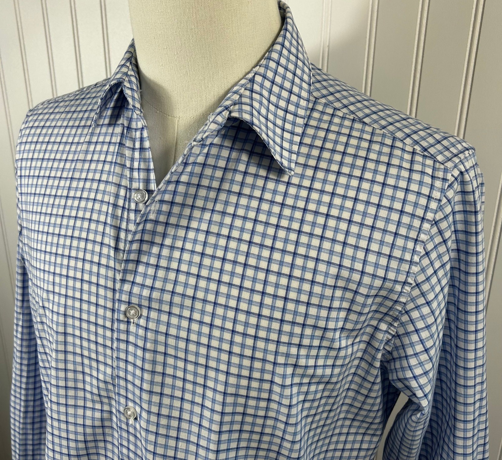 как выглядит DANIEL HECHTER Paris -Mens Button Up BLUE Plaid Long Sleeve Dress Shirt - SIZE M фото