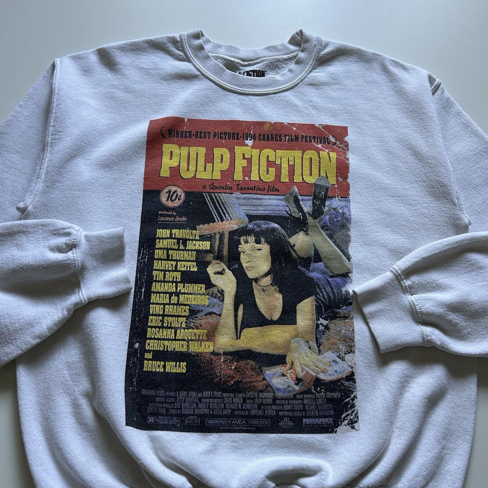 как выглядит Pulp Fiction Crewneck Sweatshirt Mens Size Medium White Vintage Retro Movie фото