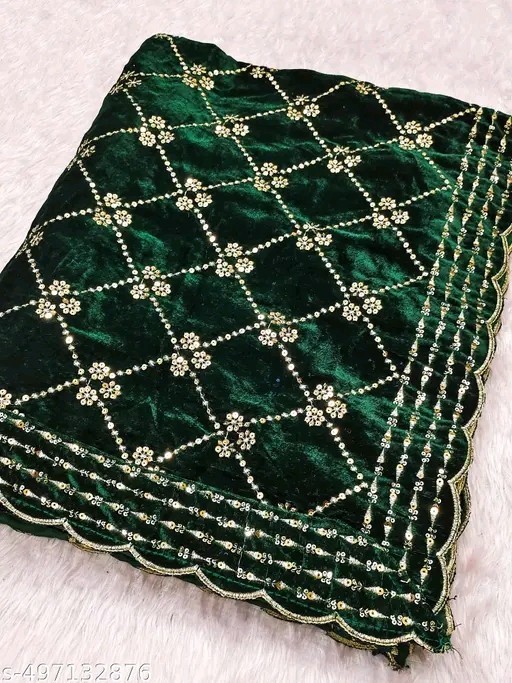 Green Embroidery Velvet Dupatta For Bride And Women Velvet Shawl Odhani Veil