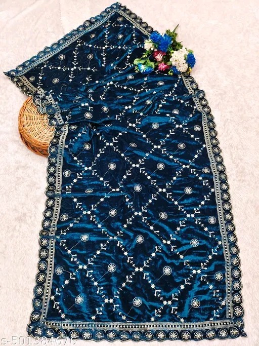 Teal Embroidery Velvet Dupatta For Bride And Women Velvet Shawl Odhani Veil