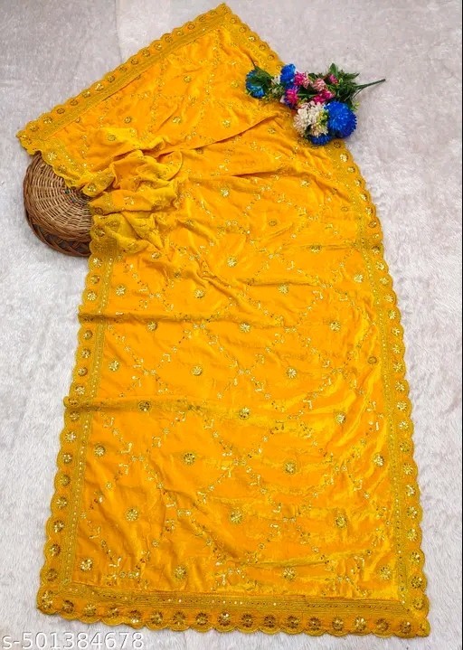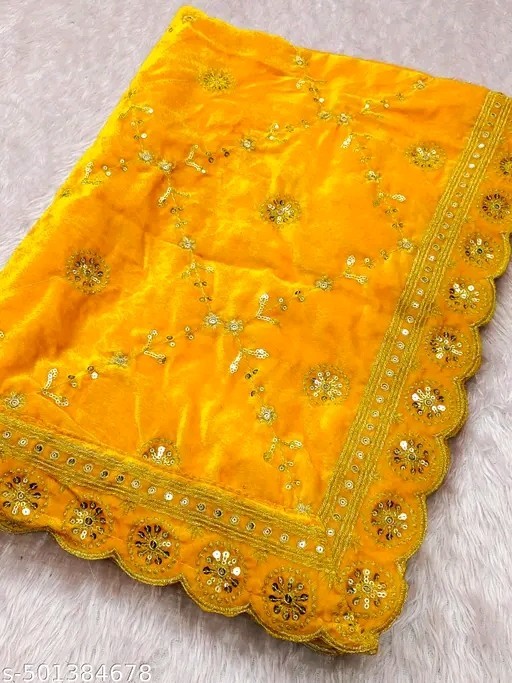Yellow Embroidery Velvet Dupatta For Bride And Women Velvet Shawl Odhani Veil