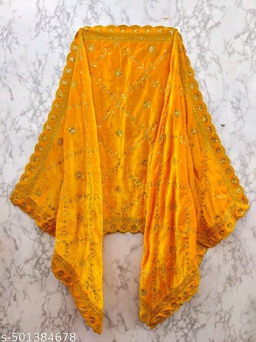 как выглядит Yellow Embroidery Velvet Dupatta For Bride And Women Velvet Shawl Odhani Veil фото