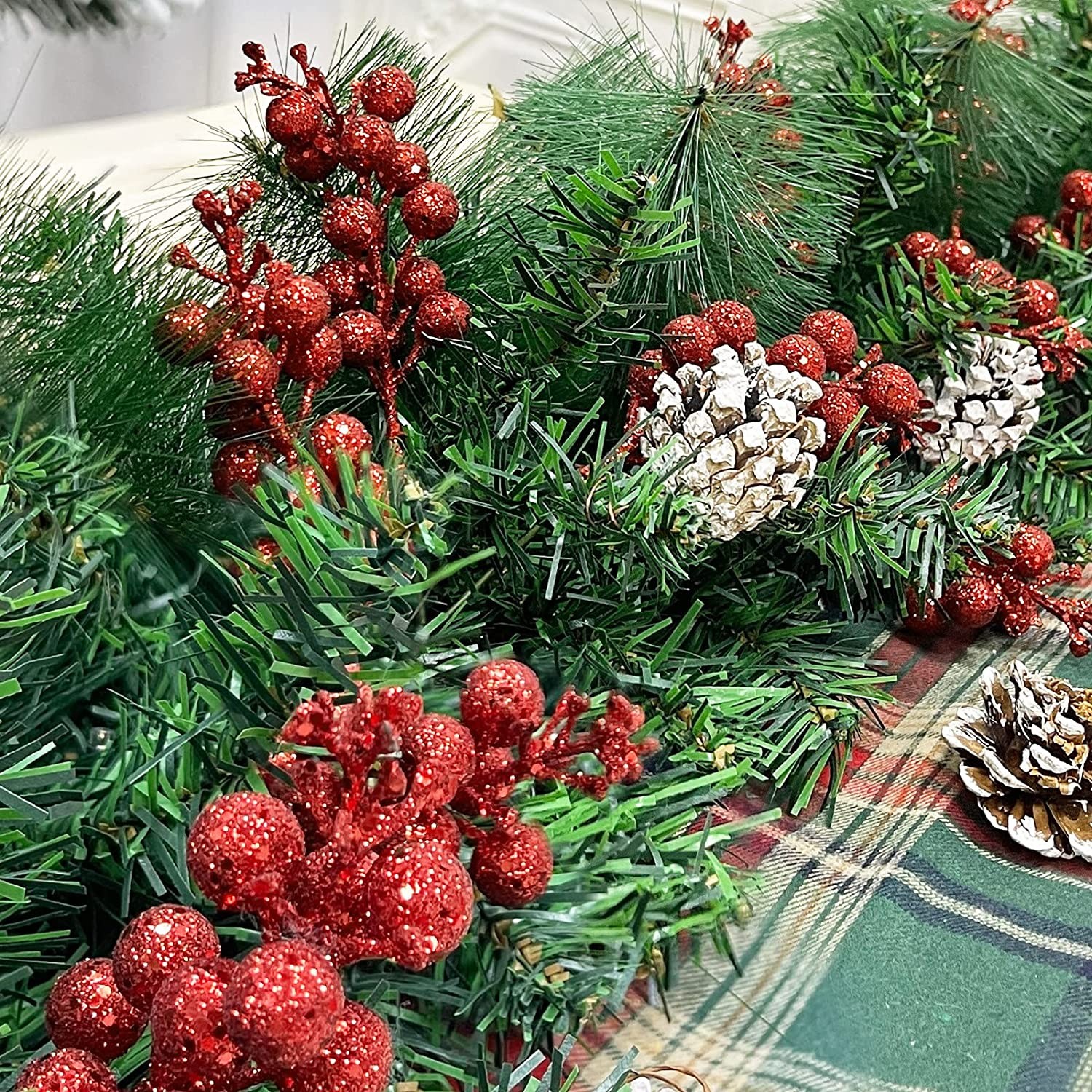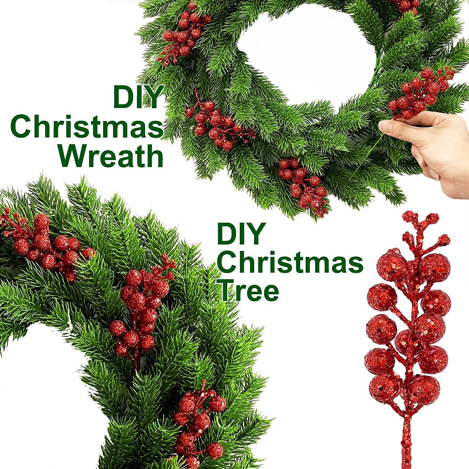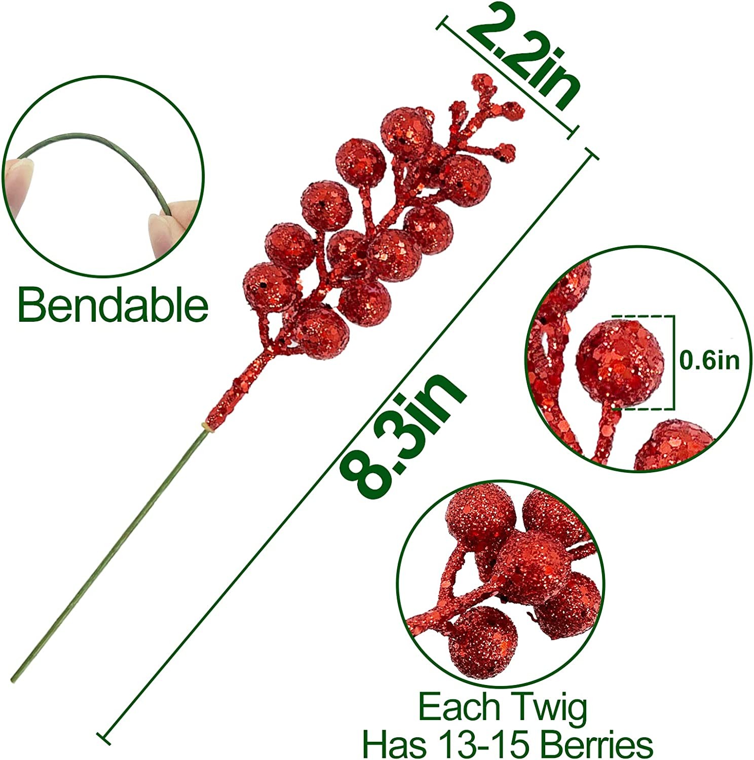 10/30x Christmas Glitter Berries Stems Artificial Red Berry Branches Holly Picks