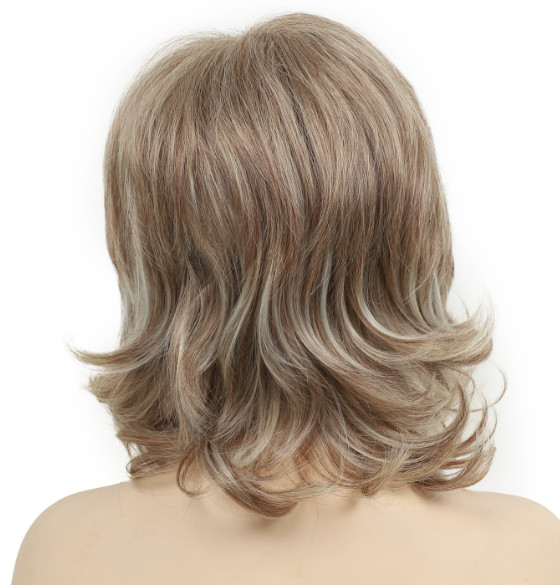 Short Wavyy Bouncy Brown Mix Synthetic Hair Wigs Women Soft Natural Daily