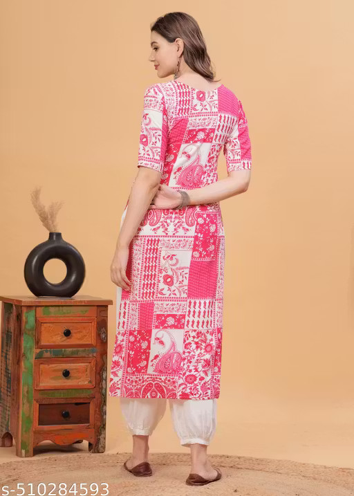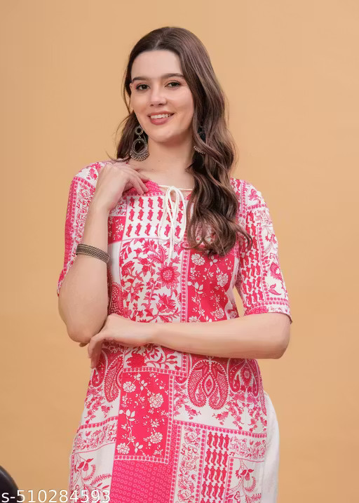 Indian Women Floral Printed Rayon Sraight Kurta Kurti Top Tunic Pakistani dress