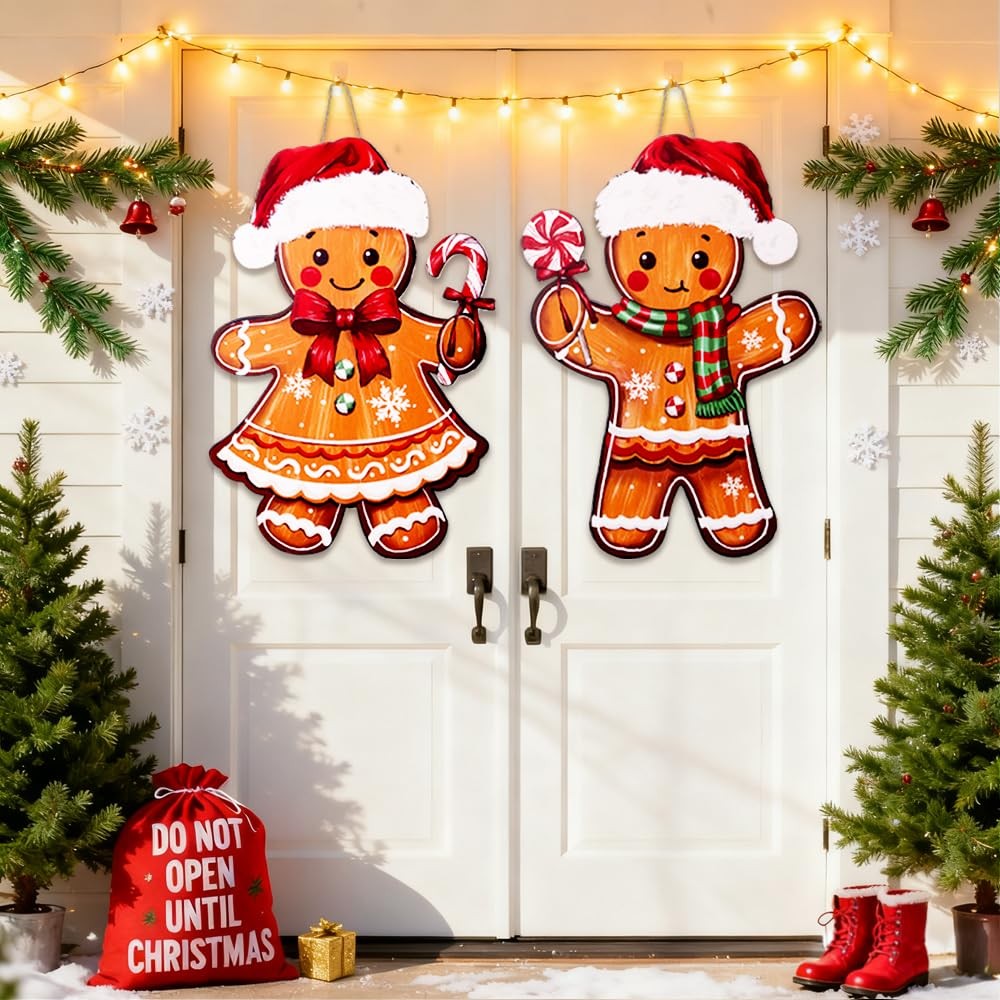 Included Components: 2 Pcs Christmas Gingerbread Man Hanging Signs