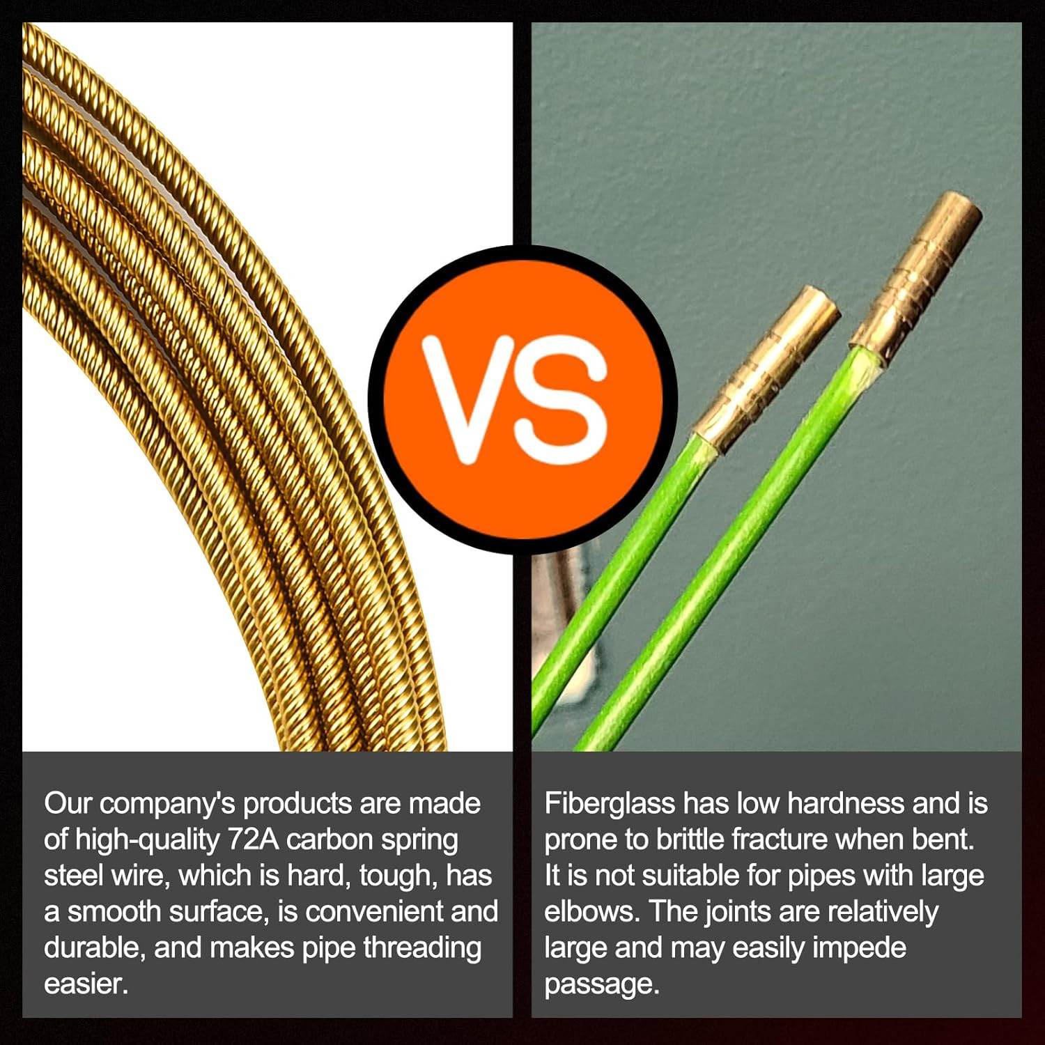 • Fish Tape 16.4Ft Wire Puller Running Electrical Wire Cable Pulley Head Spring, H