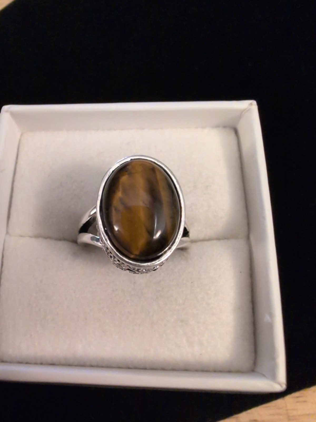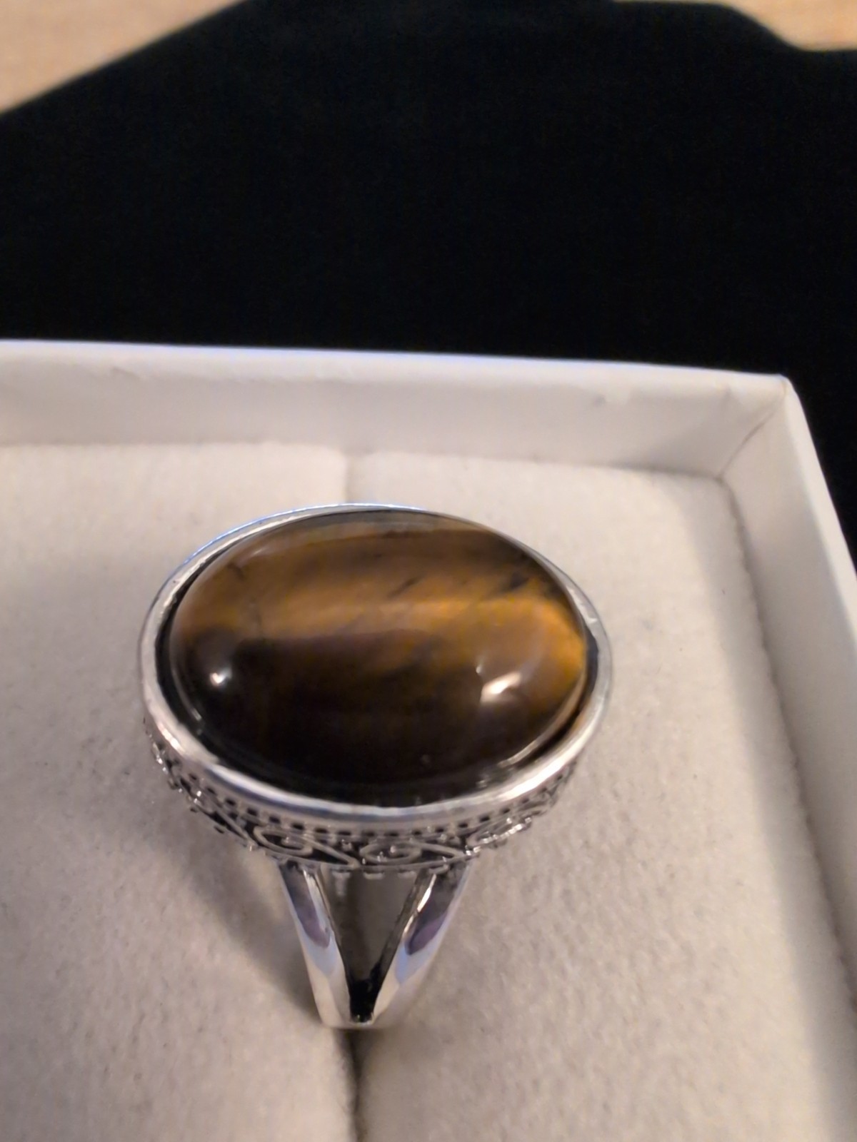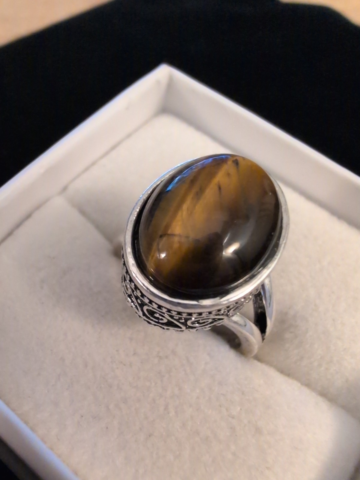 как выглядит Sterling 925 Large Center Cut Tigers Eye Natural Stone Handcrafted Size 8 9g фото