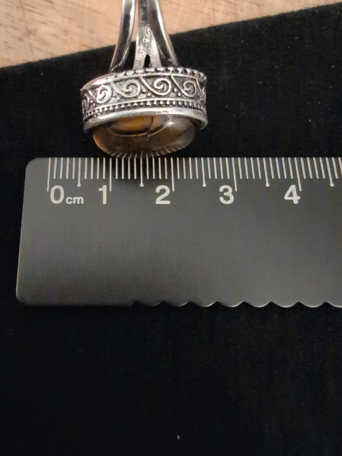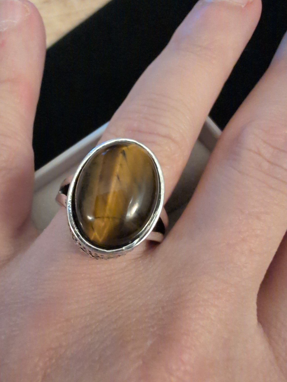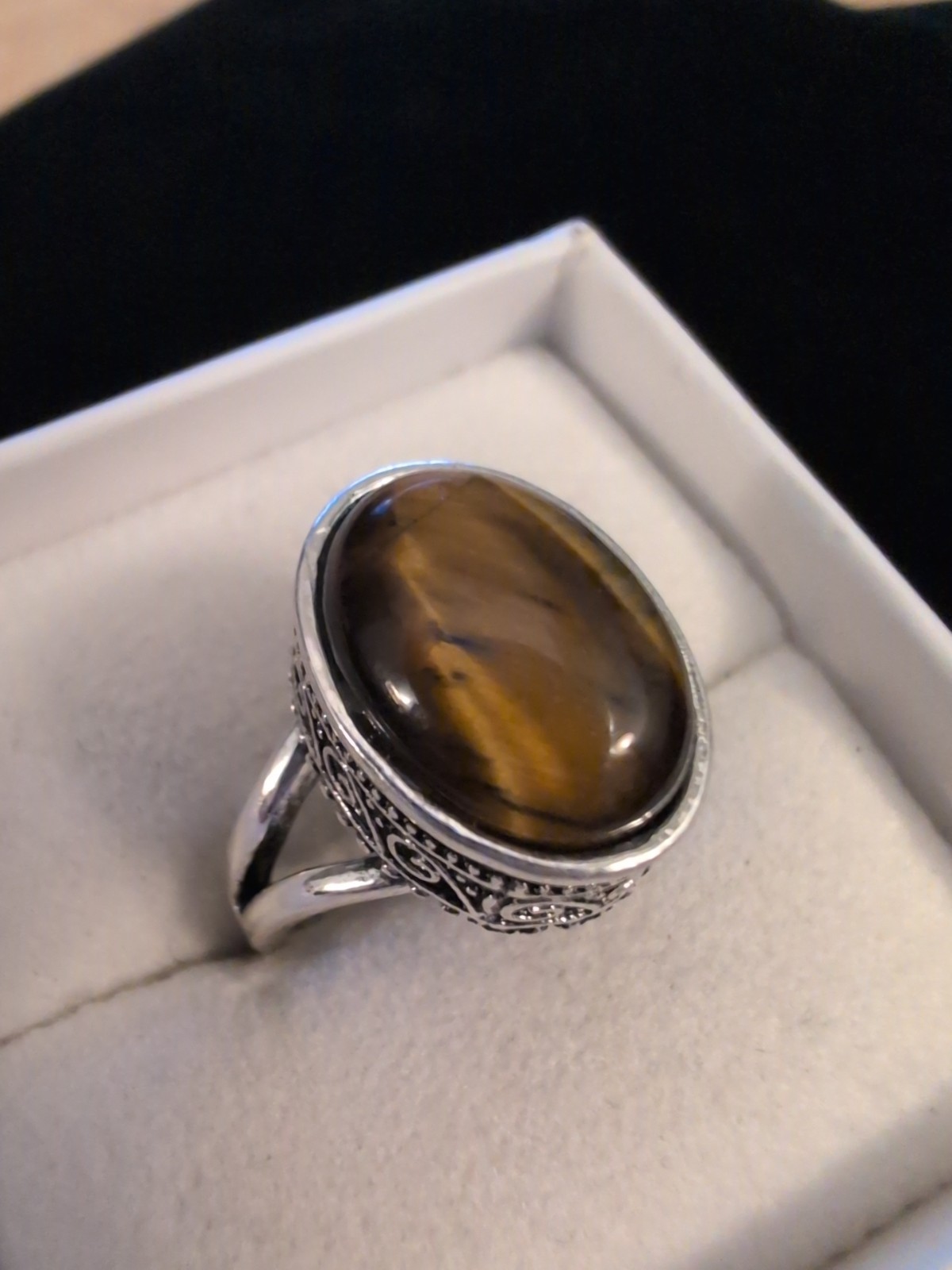 как выглядит Sterling 925 Large Center Cut Tigers Eye Natural Stone Handcrafted Size 8 9g фото