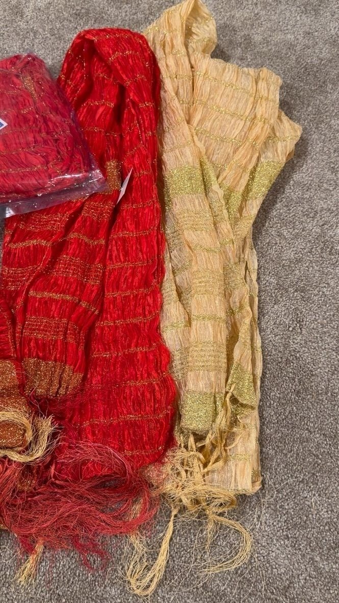 как выглядит Lot of x8 Red Gold Metallic Indian Scarves фото