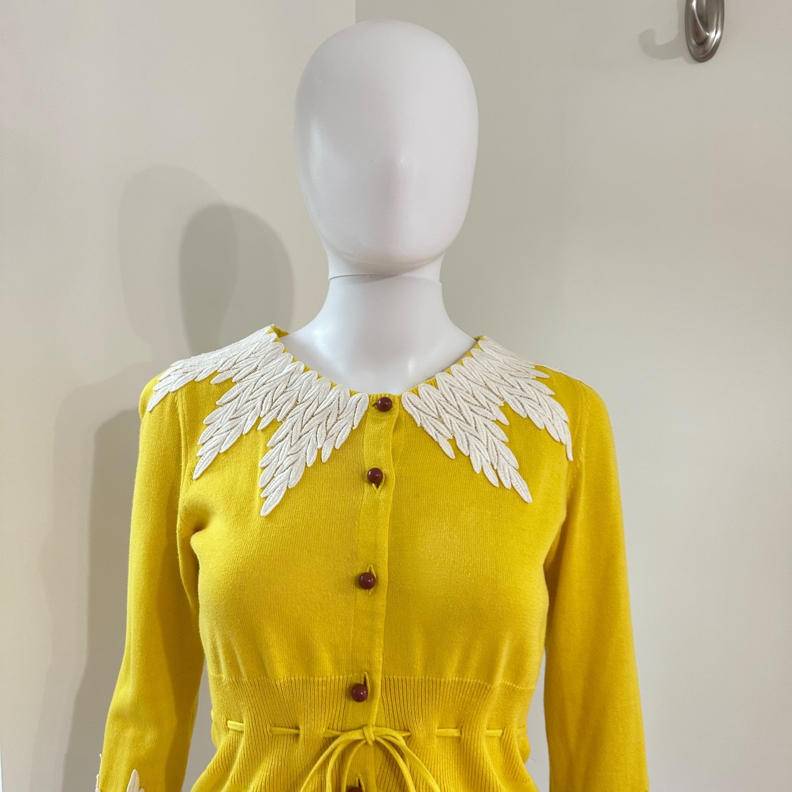 как выглядит Anthropologie Moth Cardigan Womens Size S Sweater Yellow Embroidered Romantic фото